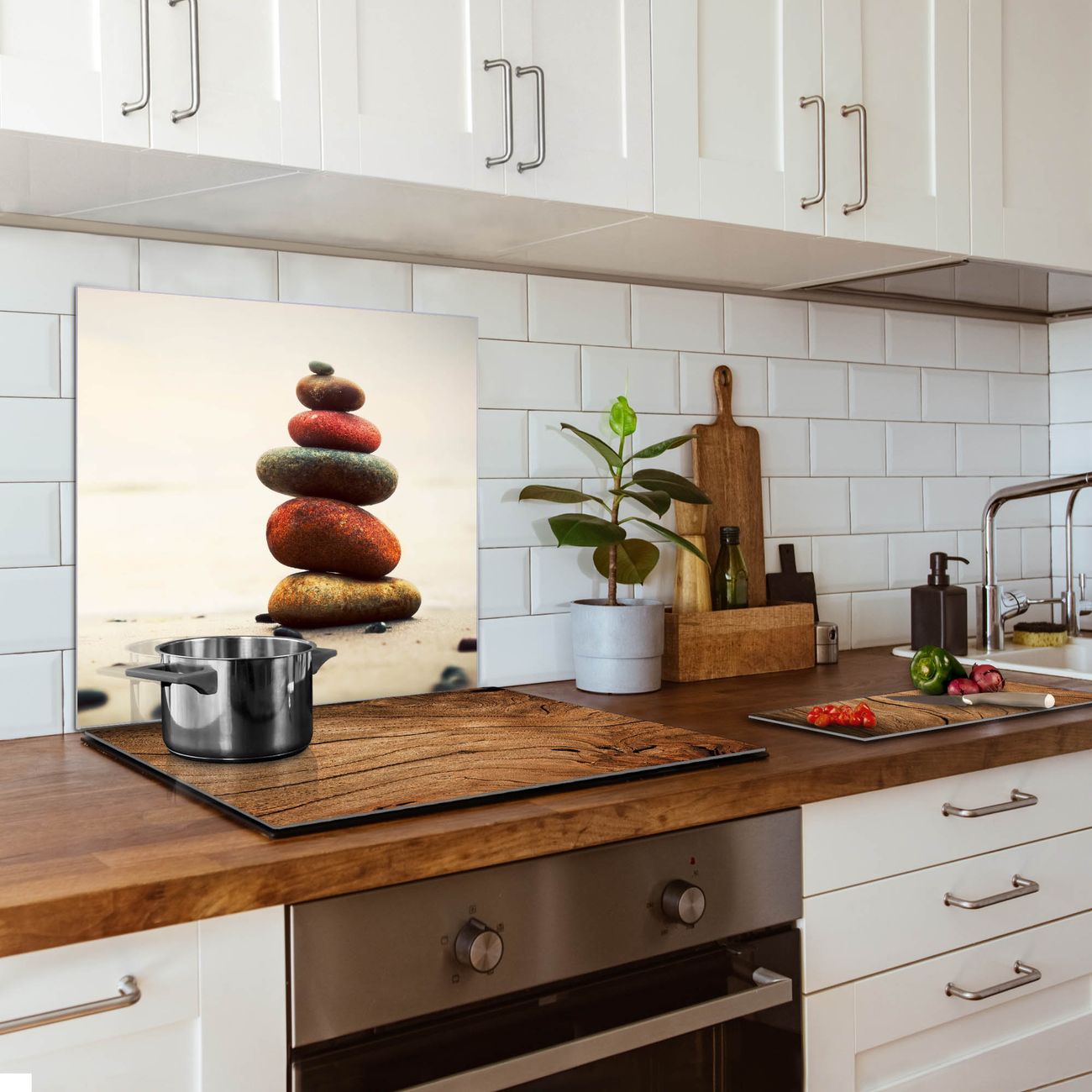 Die banjado Glas Küchenrückwand in verschiedenen Größen mit Motiv Steinmännchen schützt Ihre Küchenfliesen vor Fettspritzern oder Wasserflecken. Der Spritzschutz ist gleichzeitig magnetisch und hält Ihre Rezepte oder Einkaufslisten. 4 Neodym-Magnete und 1 Kreidestift liegen bereits bei. Leuchtende Motive und hochwertiges Material machen den Spritzschutz zum Designobjekt. Das dekorative Glasbild gibt Ihrer Küche ein individuelles Erscheinungsbild. Abgerundete Kanten und Sicherheitsglas sorgen für einen sicheren Einsatz.