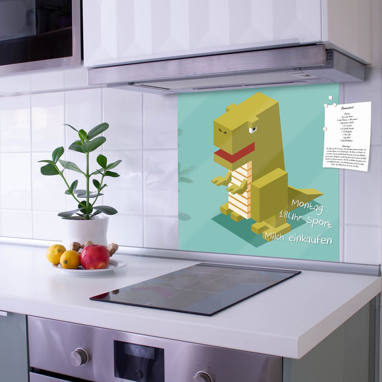 Die banjado Glas Küchenrückwand in verschiedenen Größen mit Motiv T-Rex Block schützt Ihre Küchenfliesen vor Fettspritzern oder Wasserflecken. Der Spritzschutz ist gleichzeitig magnetisch und hält Ihre Rezepte oder Einkaufslisten. 4 Neodym-Magnete und 1 Kreidestift liegen bereits bei. Leuchtende Motive und hochwertiges Material machen den Spritzschutz zum Designobjekt. Das dekorative Glasbild gibt Ihrer Küche ein individuelles Erscheinungsbild. Abgerundete Kanten und Sicherheitsglas sorgen für einen sicheren Einsatz.