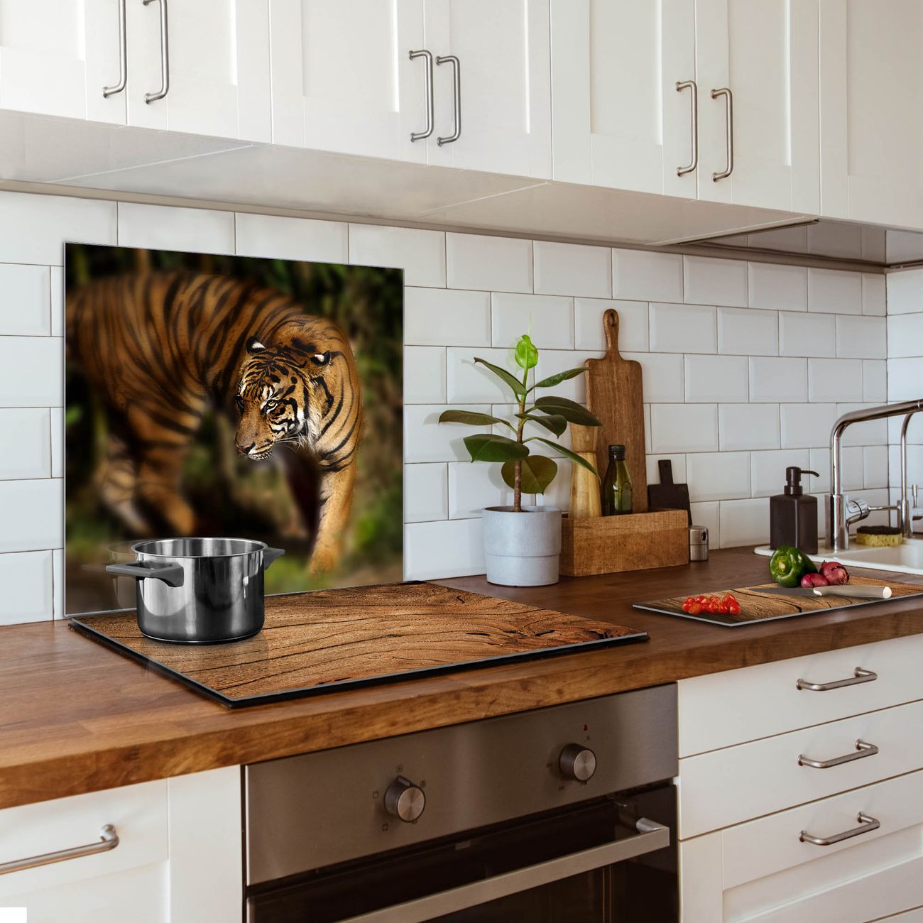Die banjado Glas Küchenrückwand in verschiedenen Größen mit Motiv Tiger schützt Ihre Küchenfliesen vor Fettspritzern oder Wasserflecken. Der Spritzschutz ist gleichzeitig magnetisch und hält Ihre Rezepte oder Einkaufslisten. 4 Neodym-Magnete und 1 Kreidestift liegen bereits bei. Leuchtende Motive und hochwertiges Material machen den Spritzschutz zum Designobjekt. Das dekorative Glasbild gibt Ihrer Küche ein individuelles Erscheinungsbild. Abgerundete Kanten und Sicherheitsglas sorgen für einen sicheren Einsatz.