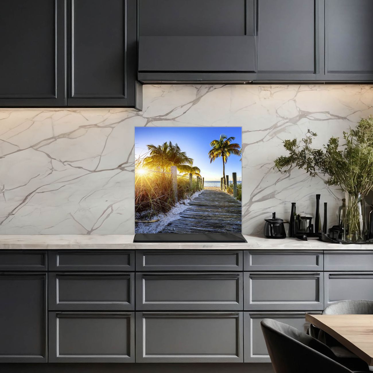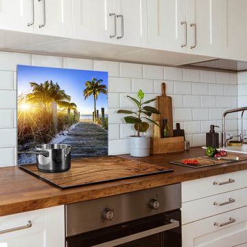 Die banjado Glas Küchenrückwand in verschiedenen Größen mit Motiv Weg zum Strand schützt Ihre Küchenfliesen vor Fettspritzern oder Wasserflecken. Der Spritzschutz ist gleichzeitig magnetisch und hält Ihre Rezepte oder Einkaufslisten. 4 Neodym-Magnete und 1 Kreidestift liegen bereits bei. Leuchtende Motive und hochwertiges Material machen den Spritzschutz zum Designobjekt. Das dekorative Glasbild gibt Ihrer Küche ein individuelles Erscheinungsbild. Abgerundete Kanten und Sicherheitsglas sorgen für einen sicheren Einsatz.