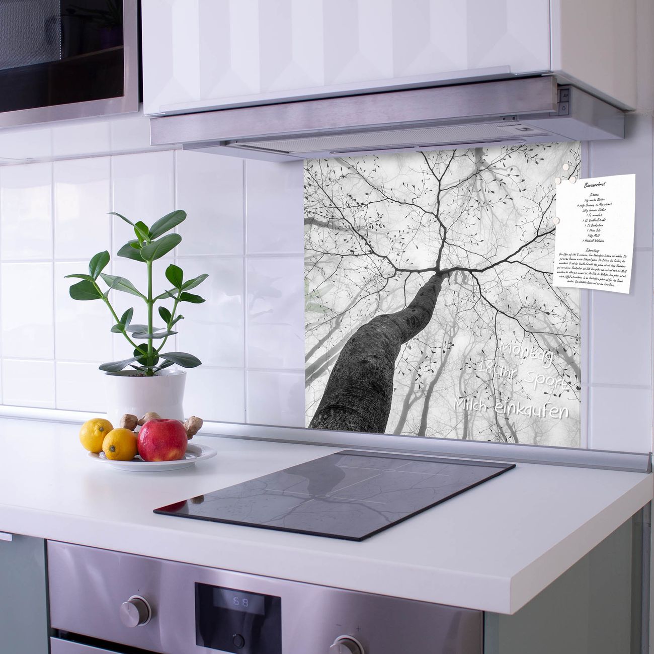 Die Küchenrückwand ist eine elegante Mehrzwecktafel: als Spritzschutz hinter Herd oder Waschbecken, hält Notizen wie ein Memoboard, ist beschreibbar mit Kreidestiften oder Whiteboard-Markern, sieht umwerfend als Glasbild aus. Sie besteht aus gehärtetem Glas, die Rückwand aus einem magnetischen Stahlblech. Durch die superflache Bauweise haben Sie die Wahl aus einer Vielzahl von Befestigungsmöglichkeiten. Sie können die Küchenrückwand mit einem Montagekleber superflach an die Wand kleben oder Sie wählen eines unserer passenden Befestigungssets, welches eine optimale Montage garantiert. Die Küchenrückwand besteht aus zertifiziertem Sicherheitsglas. Durch die mitgelieferten 4 Neodym-Magnete ist Ihre Glas Magnettafel sofort einsatzbereit.