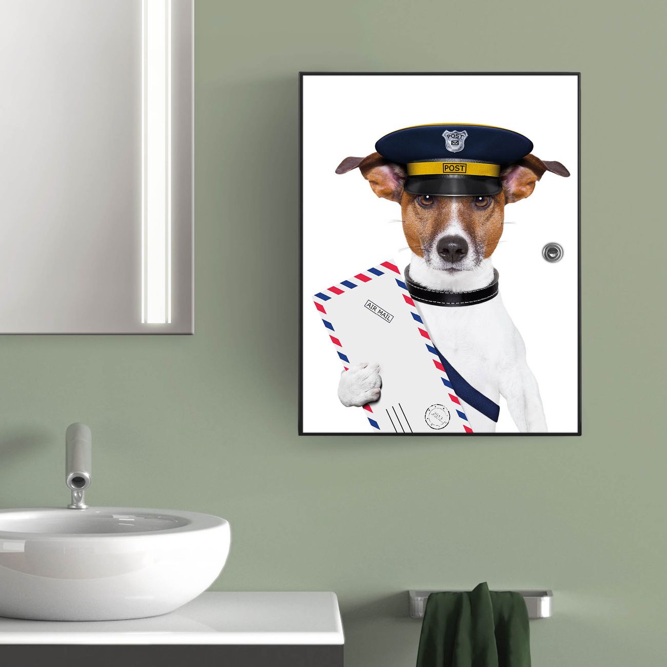 Medizinschrank Stahl Motiv Postbote Jack Russel