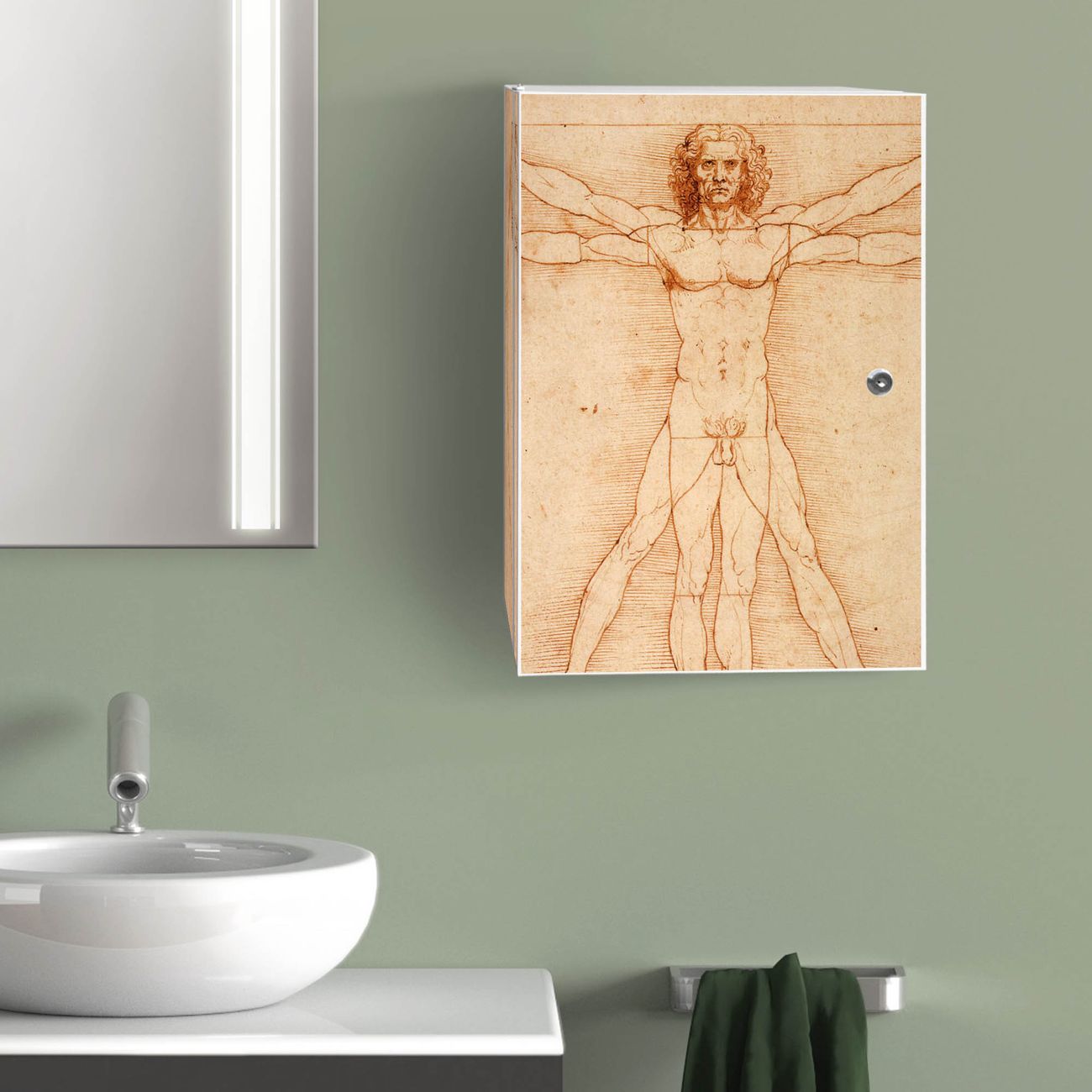 Medizinschrank Stahl Motiv Vitruvianische Figur