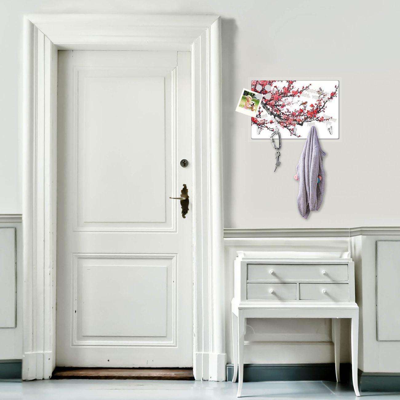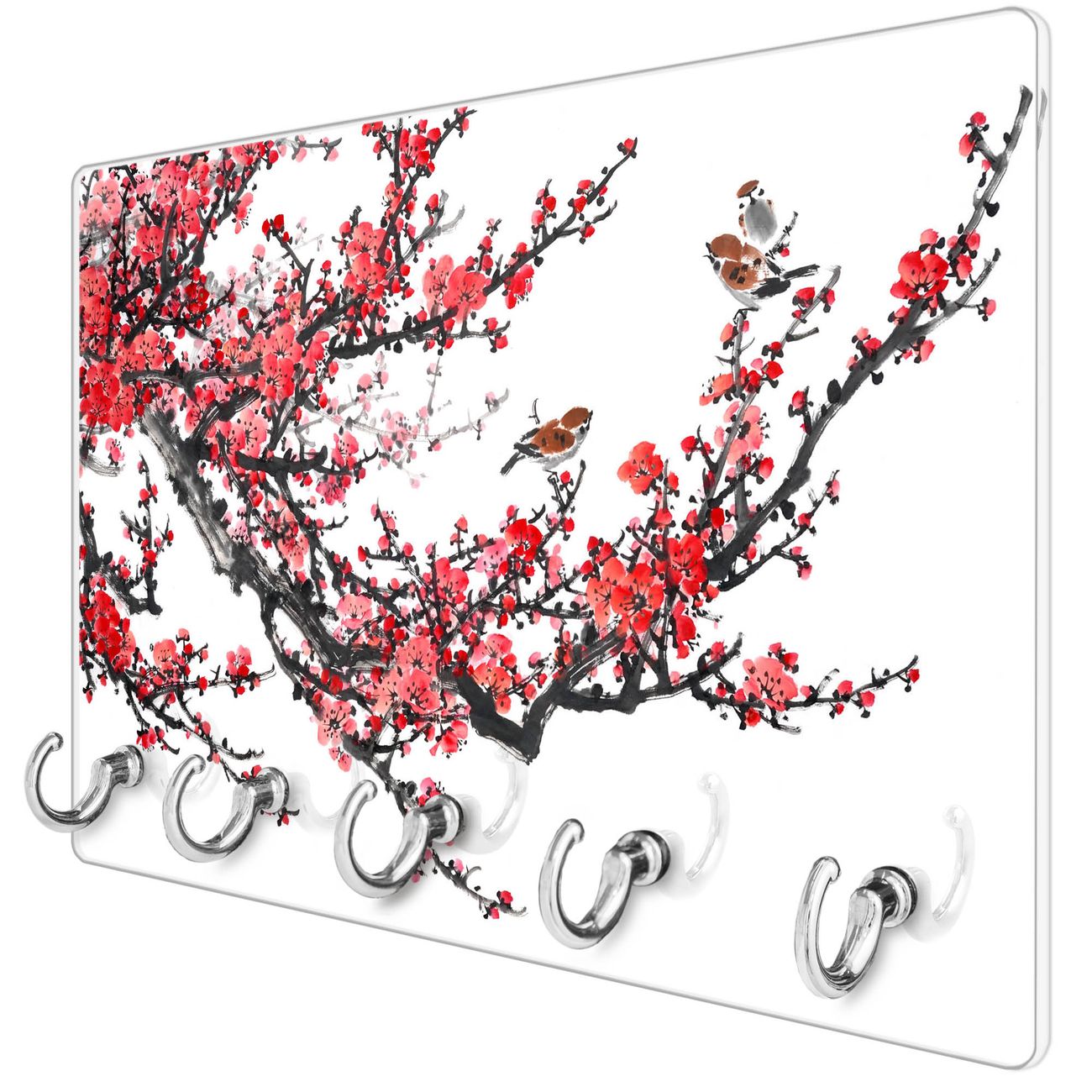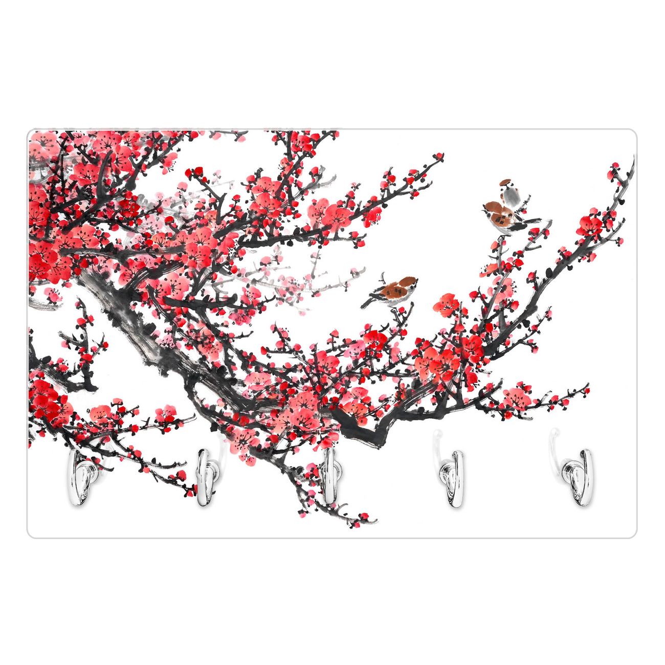 Glas Schlüsselbrett mit 5 Haken Japanische Blüten 1