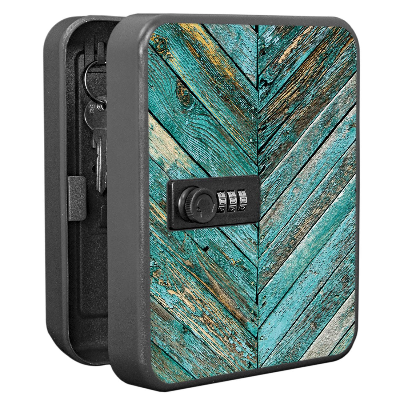 Schlüsselkasten abschließbar Motiv Altes Holz Blau