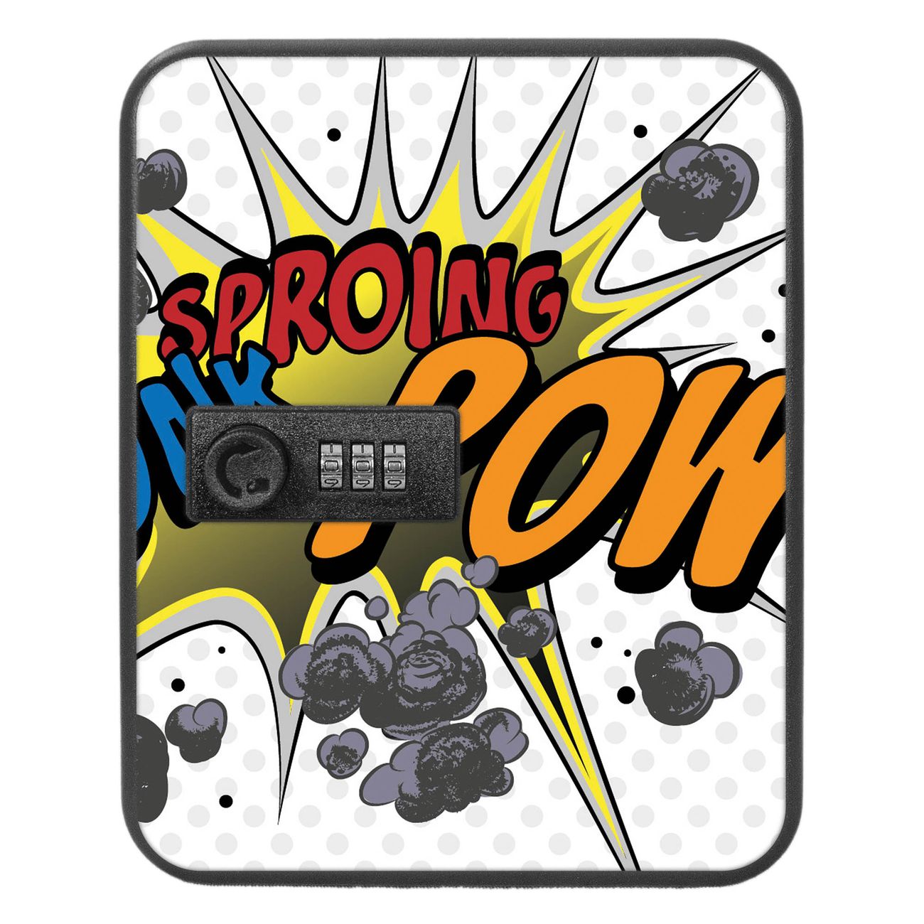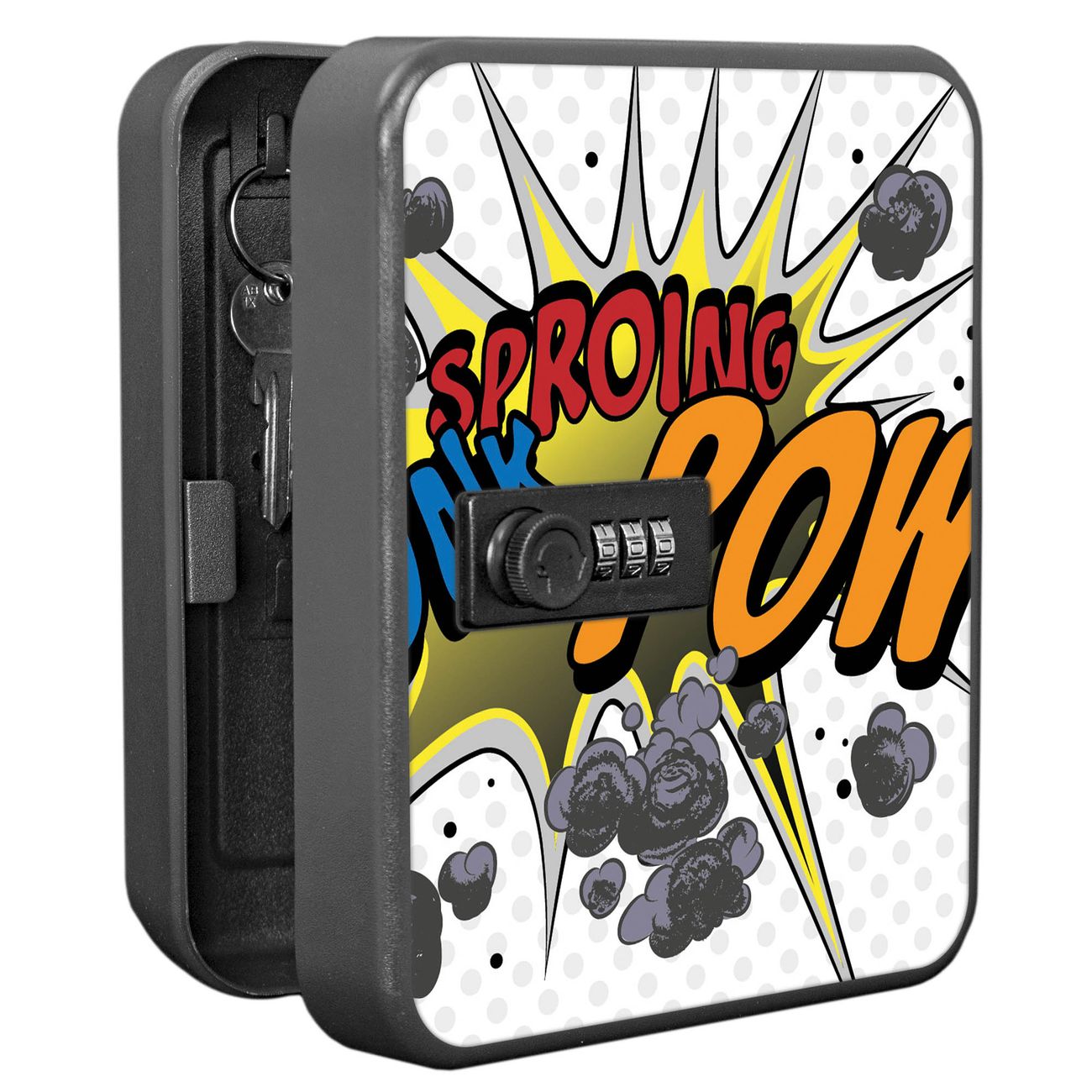 Der Schlüsselkasten ist gesamt 20x16x9,3cm groß und wiegt ca. 900g. Die komplette Schlüsselaufbewahrung besteht aus schwarzem pulverbeschichtetem Stahl und wird von uns auf der Front mit einer Motivfolie kaschiert.