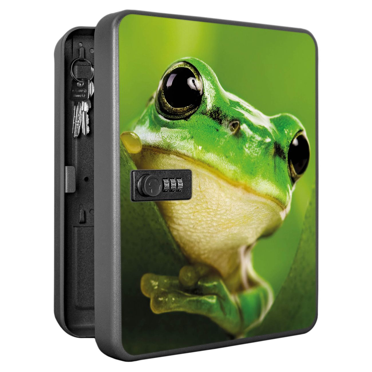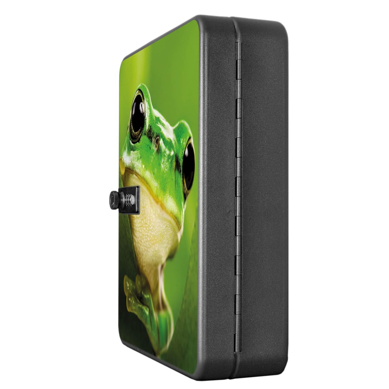 Der Schlüsselkasten ist gesamt 30x24x9,3cm groß und wiegt ca. 1500g. Die komplette Schlüsselaufbewahrung besteht aus schwarzem pulverbeschichtetem Stahl und wird von uns auf der Front mit einer Motivfolie kaschiert.