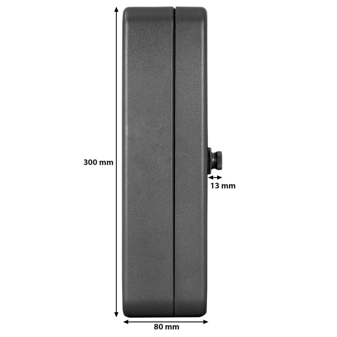 Der Schlüsselkasten ist gesamt 30x24x9,3cm groß und wiegt ca. 1500g. Die komplette Schlüsselaufbewahrung besteht aus schwarzem pulverbeschichtetem Stahl und wird von uns auf der Front mit einer Motivfolie kaschiert.