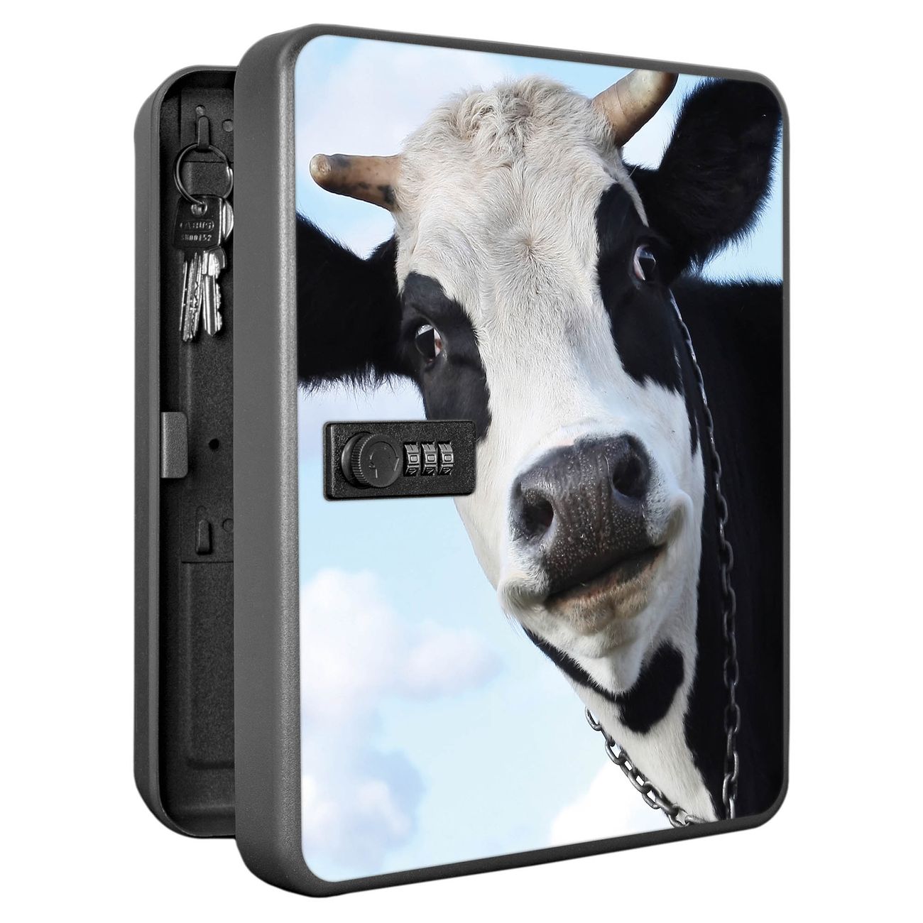 Der Schlüsselkasten ist gesamt 30x24x9,3cm groß und wiegt ca. 1500g. Die komplette Schlüsselaufbewahrung besteht aus schwarzem pulverbeschichtetem Stahl und wird von uns auf der Front mit einer Motivfolie kaschiert.