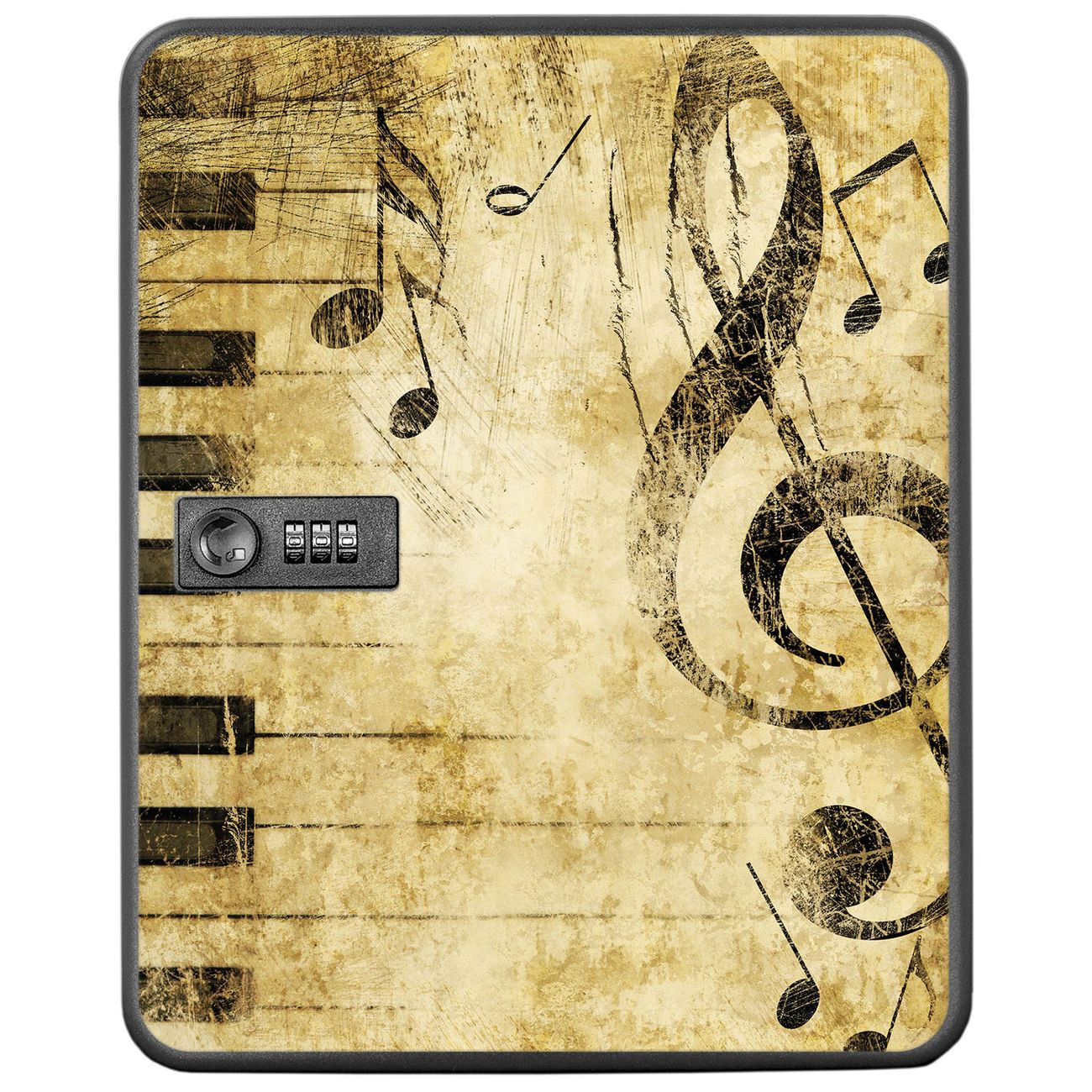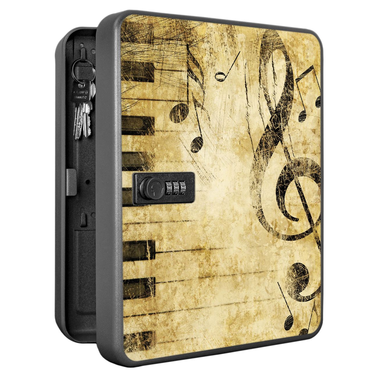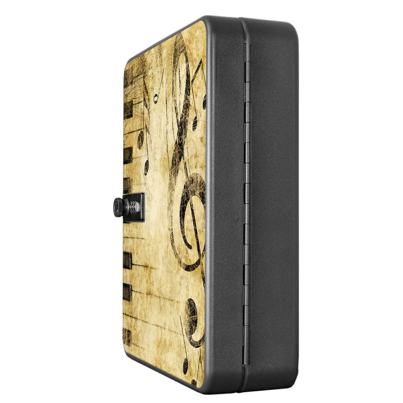 Der Schlüsselkasten ist gesamt 30x24x9,3cm groß und wiegt ca. 1500g. Die komplette Schlüsselaufbewahrung besteht aus schwarzem pulverbeschichtetem Stahl und wird von uns auf der Front mit einer Motivfolie kaschiert.