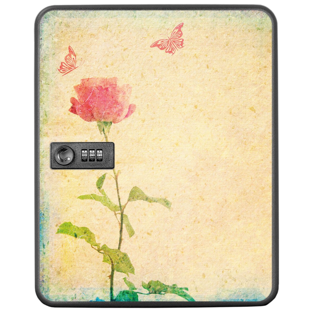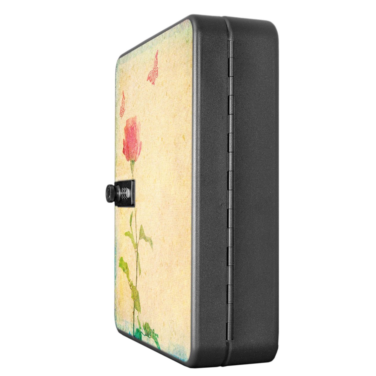 Der Schlüsselkasten ist gesamt 30x24x9,3cm groß und wiegt ca. 1500g. Die komplette Schlüsselaufbewahrung besteht aus schwarzem pulverbeschichtetem Stahl und wird von uns auf der Front mit einer Motivfolie kaschiert.