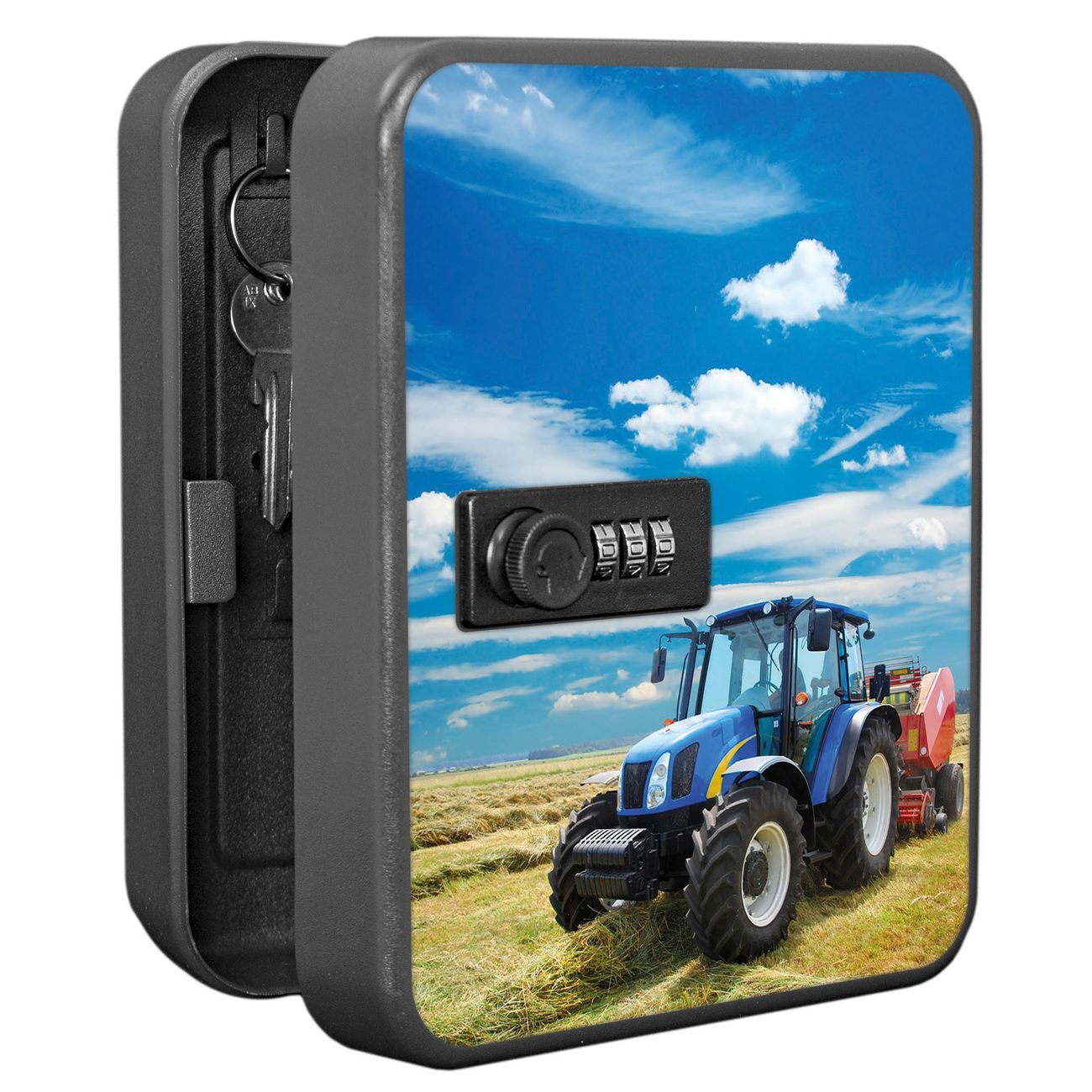 Der Schlüsselkasten ist gesamt 20x16x9,3cm groß und wiegt ca. 900g. Die komplette Schlüsselaufbewahrung besteht aus schwarzem pulverbeschichtetem Stahl und wird von uns auf der Front mit einer Motivfolie kaschiert.