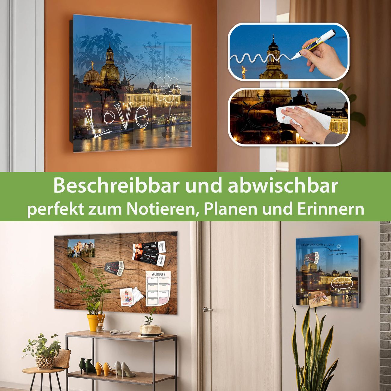 ✅ Magnetisch und mit Kreidestift beschreibbar, gehärtetes Glas, links angeschlagene TürOrdnung und Design in einem
