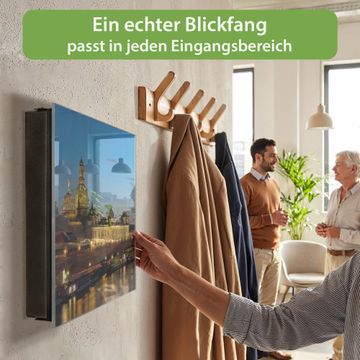 Bringe Ordnung und Eleganz in deinen Eingangsbereich mit dem banjado Schlüsselkasten Motiv Motiv Altstadt Dresden. Die moderne Schlüsselbox kombiniert funktionales Design mit hochwertiger Verarbeitung und wird so zu einem echten Hingucker in Flur, Büro oder Ferienwohnung. ✅ Stilvolle Schlüsselaufbewahrung mit Glasfront im Motiv Motiv Altstadt Dresden Der Design-Schlüsselkasten Motiv Motiv Altstadt Dresden bietet Platz für bis zu 50 Schlüssel, die auf 5 stabilen Reihen mit je 10 Haken übersichtlich verstaut werden. Mit seinen kompakten Maßen von 30 x 30 x 5 cm passt die Schlüsselbox perfekt auch in kleinere Räume. Der schwarz lackierte Stahlkorpus mit rechts angeschlagenem Türscharnier harmoniert mit der Glasfront und fügt sich nahtlos in jedes Wohnambiente ein. Ob als Schlüsselorganizer für Zuhause oder als praktische Lösung für Büros, Praxen und Gewerbe, der banjado Schlüsselkasten sorgt für Ordnung und Übersicht. Dank der magnetischen, mit Kreidestiften beschreibbaren Glasfront kannst du Notizen anheften oder Termine direkt auf der Oberfläche festhalten. Die Schlüsselbox Motiv Motiv Altstadt Dresden zur Wandmontage wird inklusive Befestigungsmaterial geliefert und ist schnell angebracht. So hast du deine Schlüssel jederzeit griffbereit und zugleich stilvoll verstaut. Mit diesem banjado Schlüsselkasten Motiv Motiv Altstadt Dresden kombinierst du praktische Aufbewahrung mit stilvollem Wohndesign. Ob privat oder geschäftlich, die Schlüsselbox sorgt für mehr Ordnung, Übersicht und ein wohnliches Ambiente.Vorteile im Überblick