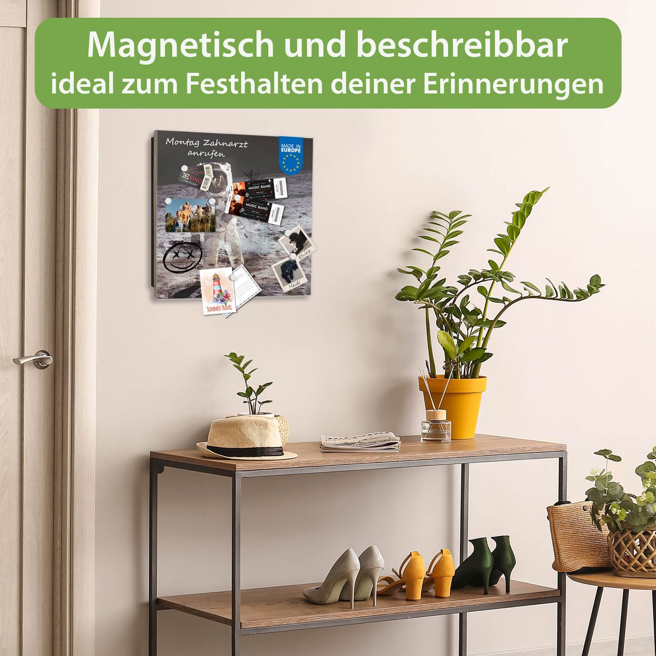 ✅ Magnetisch und mit Kreidestift beschreibbar, gehärtetes Glas, links angeschlagene TürOrdnung und Design in einem