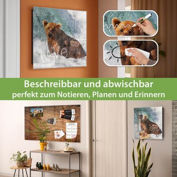 Bringe Ordnung und Eleganz in deinen Eingangsbereich mit dem banjado Schlüsselkasten Motiv Motiv Bär Im Wasser. Die moderne Schlüsselbox kombiniert funktionales Design mit hochwertiger Verarbeitung und wird so zu einem echten Hingucker in Flur, Büro oder Ferienwohnung. ✅ Stilvolle Schlüsselaufbewahrung mit Glasfront im Motiv Motiv Bär Im Wasser Der Design-Schlüsselkasten Motiv Motiv Bär Im Wasser bietet Platz für bis zu 50 Schlüssel, die auf 5 stabilen Reihen mit je 10 Haken übersichtlich verstaut werden. Mit seinen kompakten Maßen von 30 x 30 x 5 cm passt die Schlüsselbox perfekt auch in kleinere Räume. Der schwarz lackierte Stahlkorpus mit rechts angeschlagenem Türscharnier harmoniert mit der Glasfront und fügt sich nahtlos in jedes Wohnambiente ein. Ob als Schlüsselorganizer für Zuhause oder als praktische Lösung für Büros, Praxen und Gewerbe, der banjado Schlüsselkasten sorgt für Ordnung und Übersicht. Dank der magnetischen, mit Kreidestiften beschreibbaren Glasfront kannst du Notizen anheften oder Termine direkt auf der Oberfläche festhalten. Die Schlüsselbox Motiv Motiv Bär Im Wasser zur Wandmontage wird inklusive Befestigungsmaterial geliefert und ist schnell angebracht. So hast du deine Schlüssel jederzeit griffbereit und zugleich stilvoll verstaut. Mit diesem banjado Schlüsselkasten Motiv Motiv Bär Im Wasser kombinierst du praktische Aufbewahrung mit stilvollem Wohndesign. Ob privat oder geschäftlich, die Schlüsselbox sorgt für mehr Ordnung, Übersicht und ein wohnliches Ambiente.Vorteile im Überblick