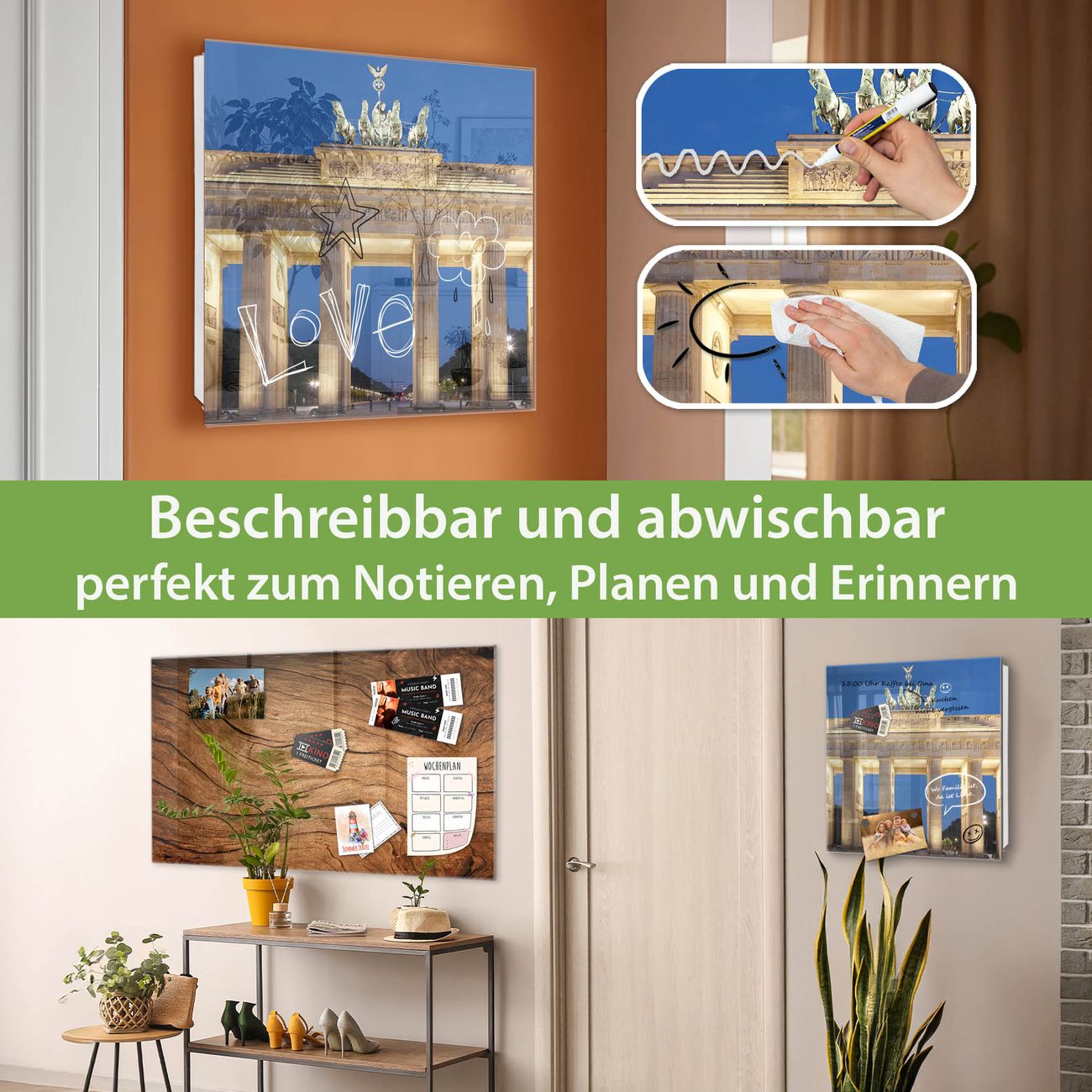 ✅ Magnetisch und mit Kreidestift beschreibbar, gehärtetes Glas, links angeschlagene TürOrdnung und Design in einem