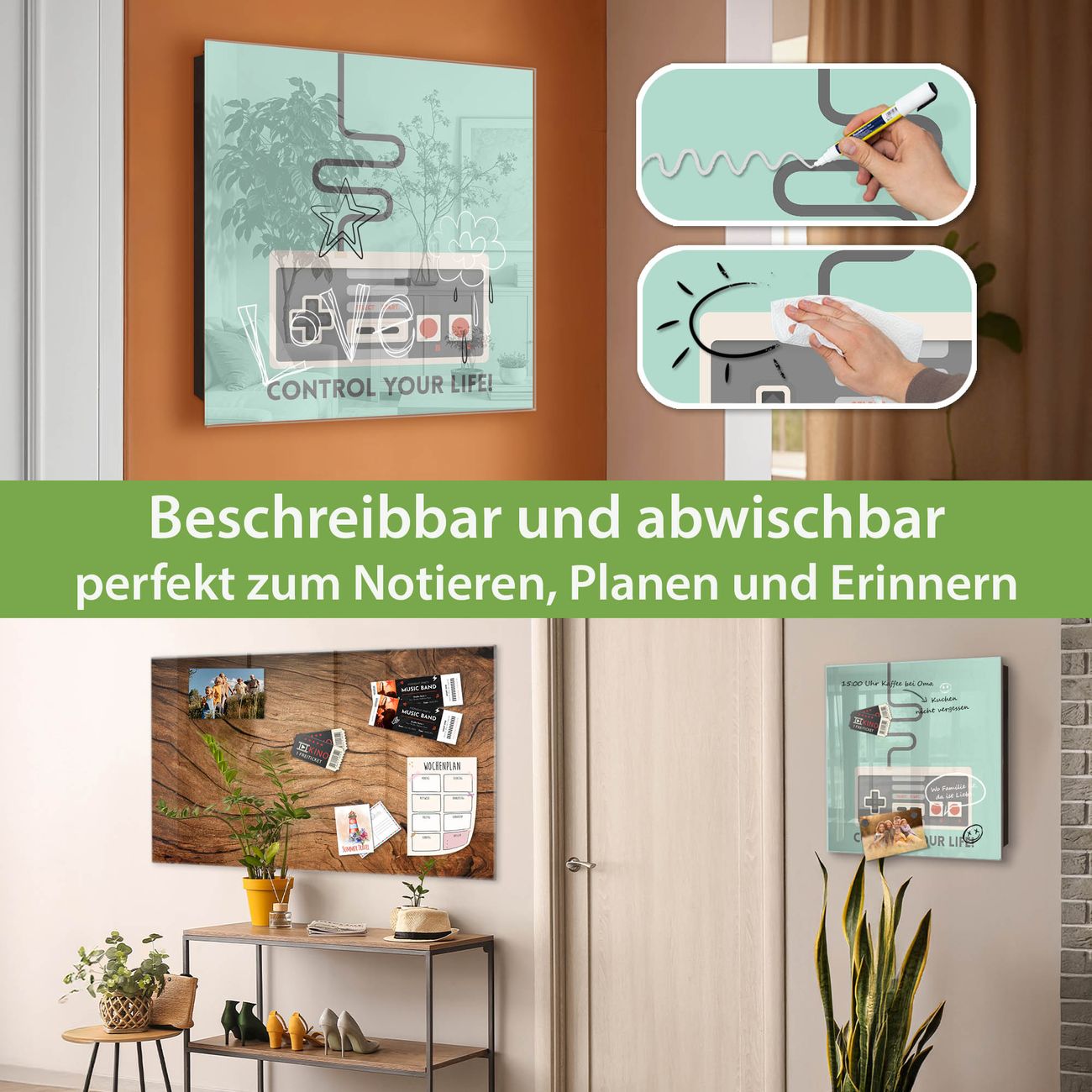 ✅ Magnetisch und mit Kreidestift beschreibbar, gehärtetes Glas, rechts angeschlagene TürOrdnung und Design in einem