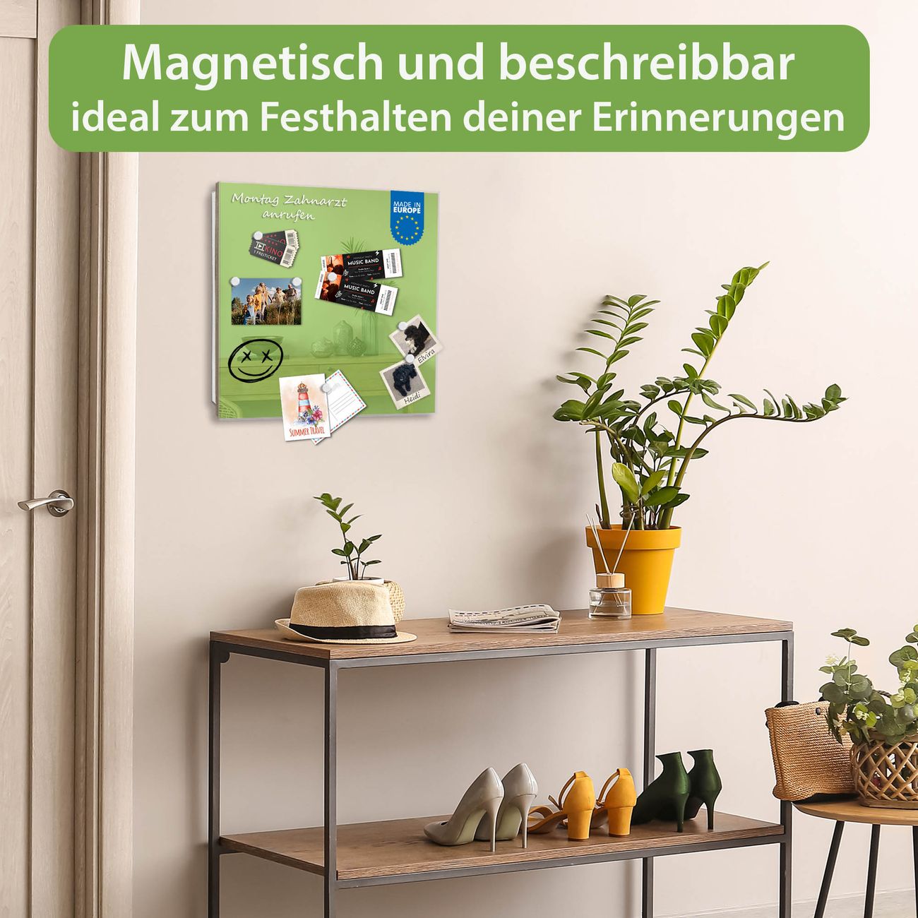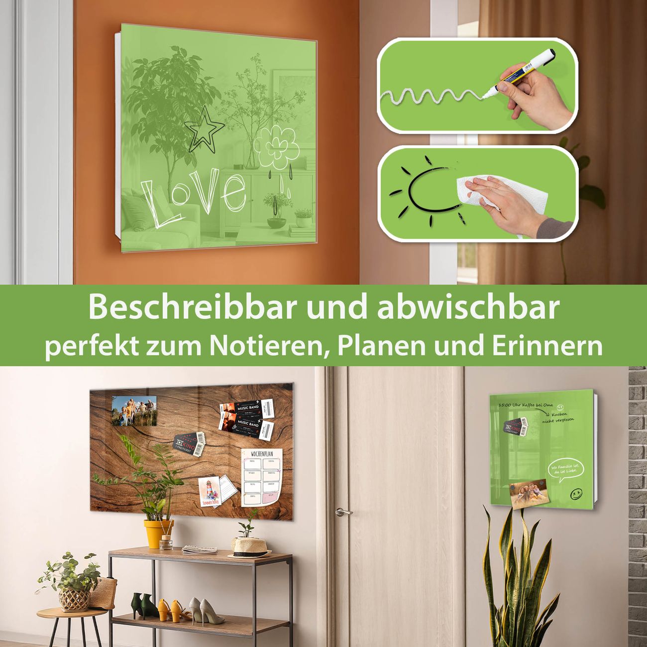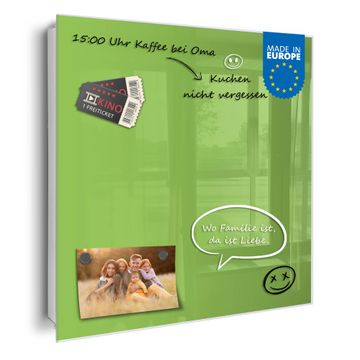 ✅ Magnetisch und mit Kreidestift beschreibbar, gehärtetes Glas, rechts angeschlagene TürOrdnung und Design in einem