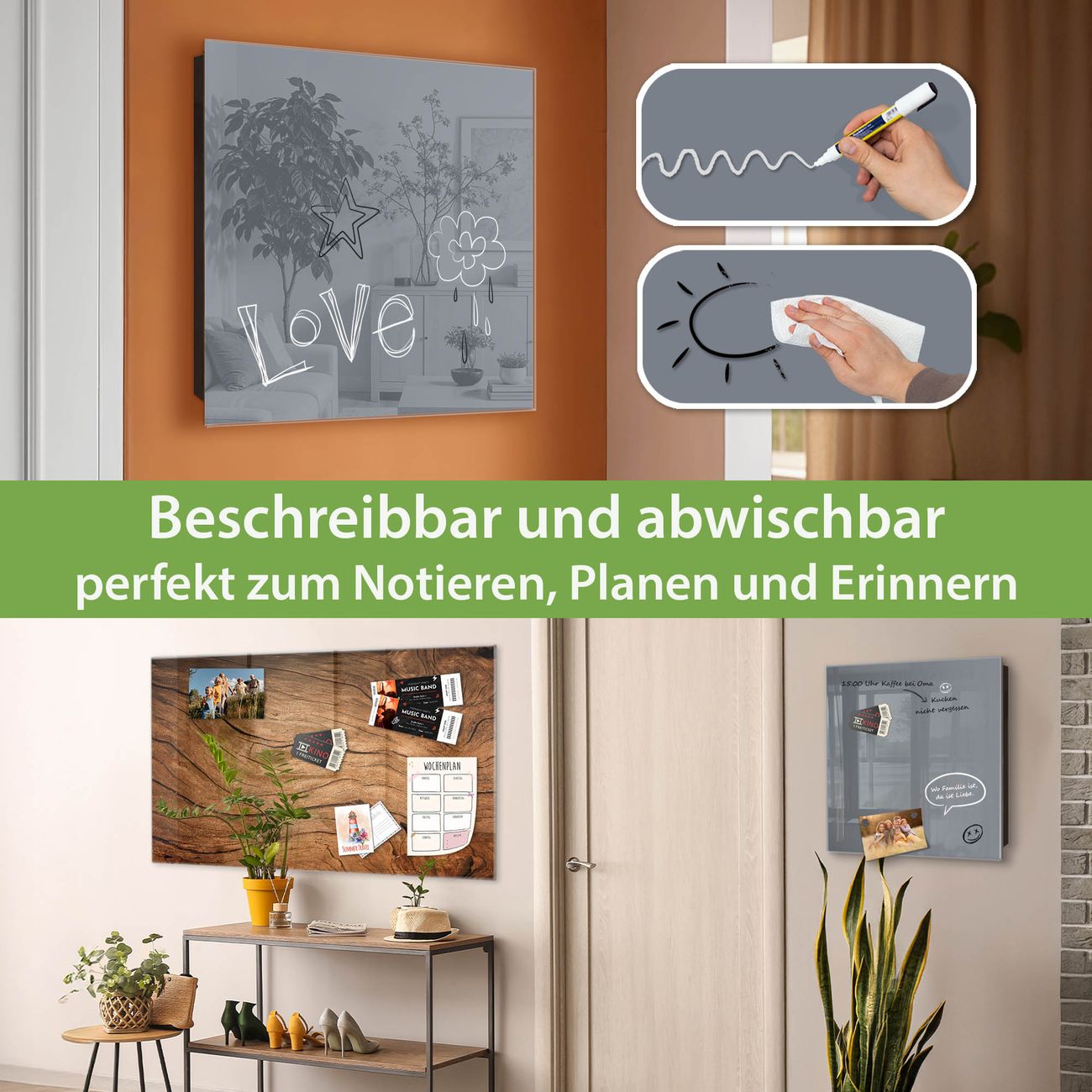 ✅ Magnetisch und mit Kreidestift beschreibbar, gehärtetes Glas, rechts angeschlagene TürOrdnung und Design in einem