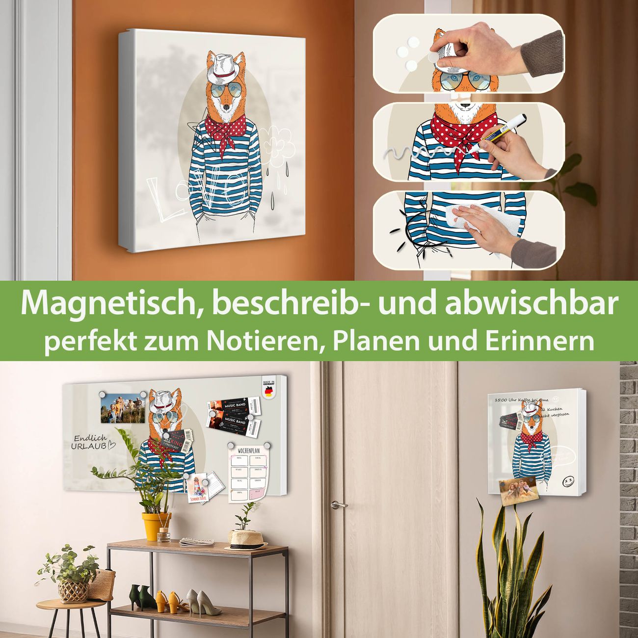 ✅ Magnetisch und mit Kreidestift beschreibbar, links angeschlagene TürOrdnung und Design in einem