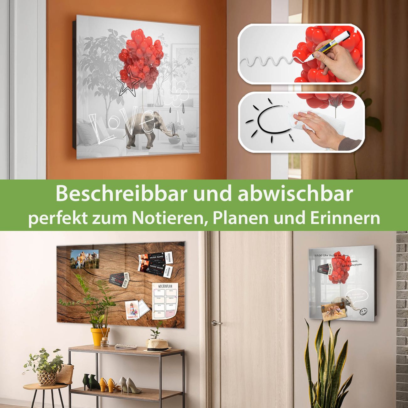 ✅ Magnetisch und mit Kreidestift beschreibbar, gehärtetes Glas, links angeschlagene TürOrdnung und Design in einem