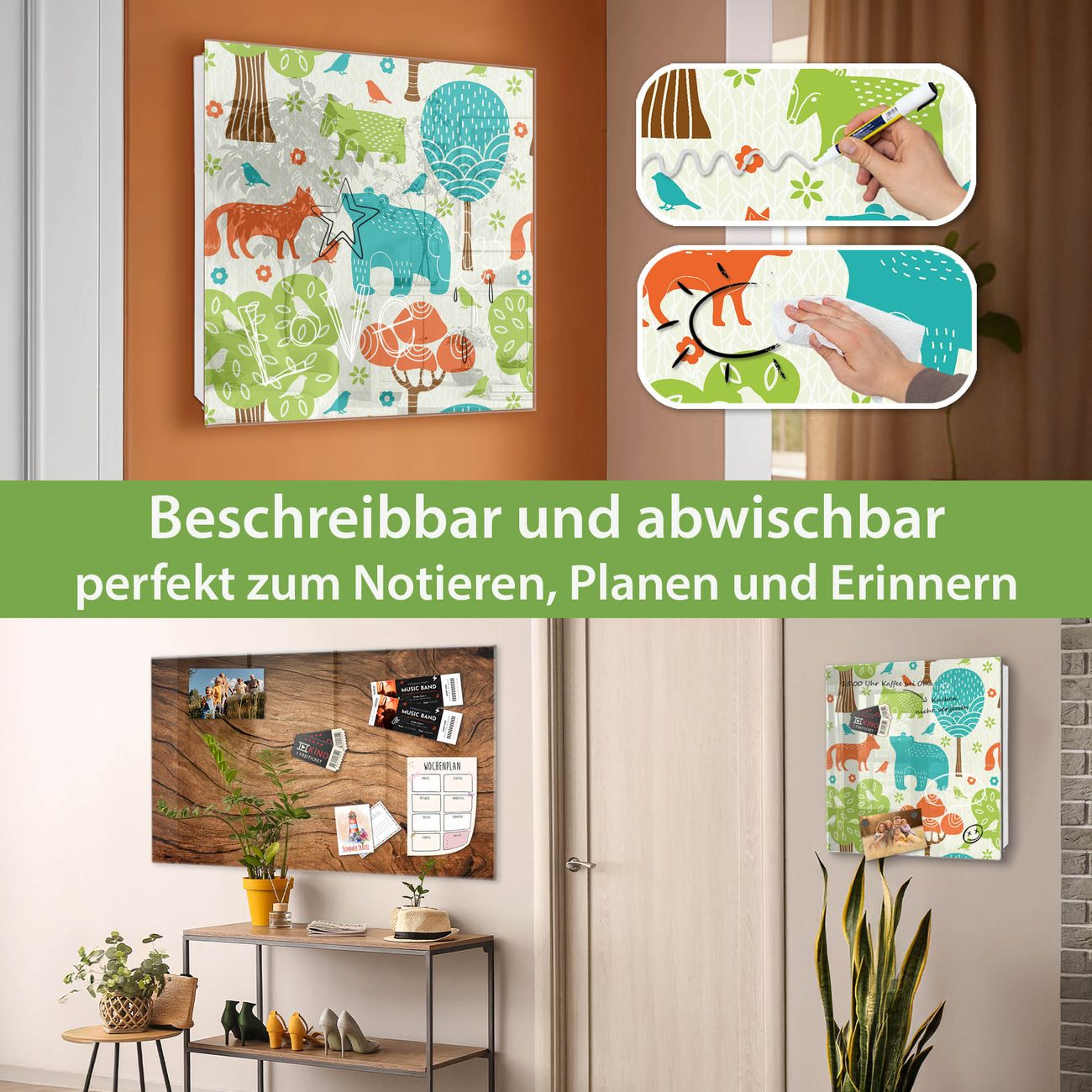 ✅ Magnetisch und mit Kreidestift beschreibbar, gehärtetes Glas, links angeschlagene TürOrdnung und Design in einem