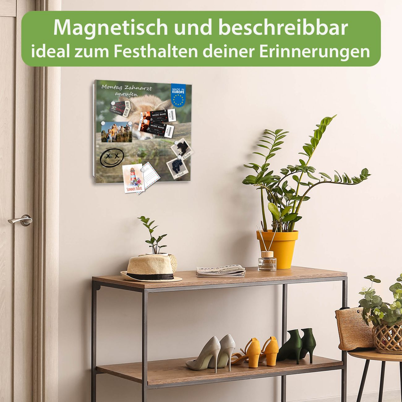 ✅ Magnetisch und mit Kreidestift beschreibbar, gehärtetes Glas, rechts angeschlagene TürOrdnung und Design in einem