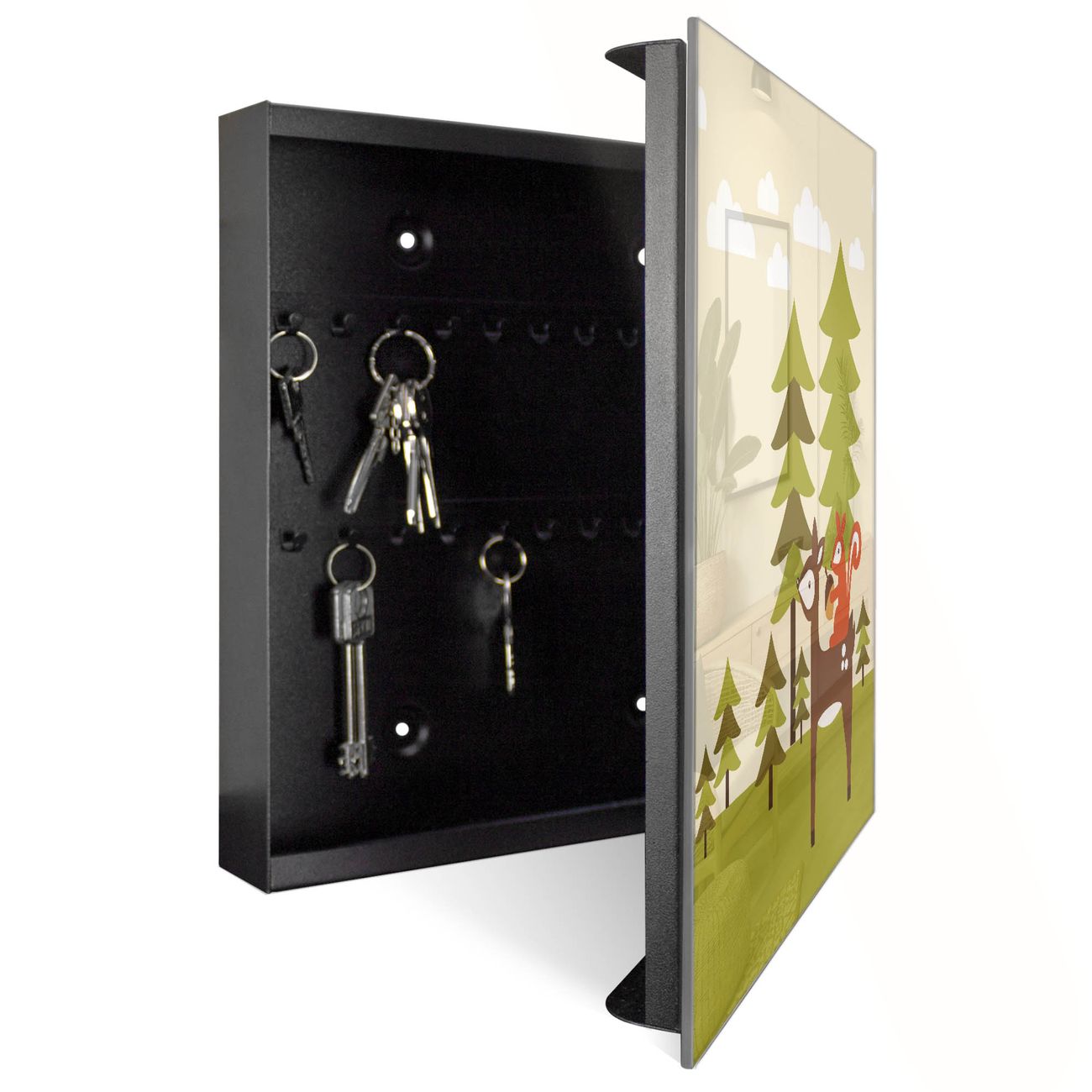 Bringe Ordnung und Eleganz in deinen Eingangsbereich mit dem banjado Schlüsselkasten Motiv Motiv Heimweg. Die moderne Schlüsselbox kombiniert funktionales Design mit hochwertiger Verarbeitung und wird so zu einem echten Hingucker in Flur, Büro oder Ferienwohnung. ✅ Stilvolle Schlüsselaufbewahrung mit Glasfront im Motiv Motiv Heimweg Der Design-Schlüsselkasten Motiv Motiv Heimweg bietet Platz für bis zu 50 Schlüssel, die auf 5 stabilen Reihen mit je 10 Haken übersichtlich verstaut werden. Mit seinen kompakten Maßen von 30 x 30 x 5 cm passt die Schlüsselbox perfekt auch in kleinere Räume. Der schwarz lackierte Stahlkorpus mit rechts angeschlagenem Türscharnier harmoniert mit der Glasfront und fügt sich nahtlos in jedes Wohnambiente ein. Ob als Schlüsselorganizer für Zuhause oder als praktische Lösung für Büros, Praxen und Gewerbe, der banjado Schlüsselkasten sorgt für Ordnung und Übersicht. Dank der magnetischen, mit Kreidestiften beschreibbaren Glasfront kannst du Notizen anheften oder Termine direkt auf der Oberfläche festhalten. Die Schlüsselbox Motiv Motiv Heimweg zur Wandmontage wird inklusive Befestigungsmaterial geliefert und ist schnell angebracht. So hast du deine Schlüssel jederzeit griffbereit und zugleich stilvoll verstaut. Mit diesem banjado Schlüsselkasten Motiv Motiv Heimweg kombinierst du praktische Aufbewahrung mit stilvollem Wohndesign. Ob privat oder geschäftlich, die Schlüsselbox sorgt für mehr Ordnung, Übersicht und ein wohnliches Ambiente.Vorteile im Überblick