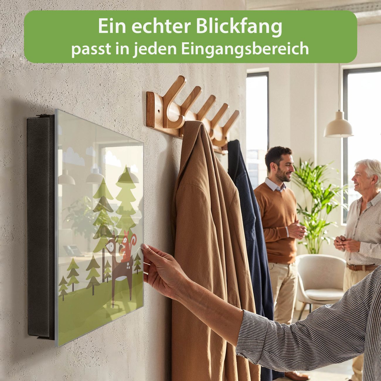 Bringe Ordnung und Eleganz in deinen Eingangsbereich mit dem banjado Schlüsselkasten Motiv Motiv Heimweg. Die moderne Schlüsselbox kombiniert funktionales Design mit hochwertiger Verarbeitung und wird so zu einem echten Hingucker in Flur, Büro oder Ferienwohnung. ✅ Stilvolle Schlüsselaufbewahrung mit Glasfront im Motiv Motiv Heimweg Der Design-Schlüsselkasten Motiv Motiv Heimweg bietet Platz für bis zu 50 Schlüssel, die auf 5 stabilen Reihen mit je 10 Haken übersichtlich verstaut werden. Mit seinen kompakten Maßen von 30 x 30 x 5 cm passt die Schlüsselbox perfekt auch in kleinere Räume. Der schwarz lackierte Stahlkorpus mit rechts angeschlagenem Türscharnier harmoniert mit der Glasfront und fügt sich nahtlos in jedes Wohnambiente ein. Ob als Schlüsselorganizer für Zuhause oder als praktische Lösung für Büros, Praxen und Gewerbe, der banjado Schlüsselkasten sorgt für Ordnung und Übersicht. Dank der magnetischen, mit Kreidestiften beschreibbaren Glasfront kannst du Notizen anheften oder Termine direkt auf der Oberfläche festhalten. Die Schlüsselbox Motiv Motiv Heimweg zur Wandmontage wird inklusive Befestigungsmaterial geliefert und ist schnell angebracht. So hast du deine Schlüssel jederzeit griffbereit und zugleich stilvoll verstaut. Mit diesem banjado Schlüsselkasten Motiv Motiv Heimweg kombinierst du praktische Aufbewahrung mit stilvollem Wohndesign. Ob privat oder geschäftlich, die Schlüsselbox sorgt für mehr Ordnung, Übersicht und ein wohnliches Ambiente.Vorteile im Überblick