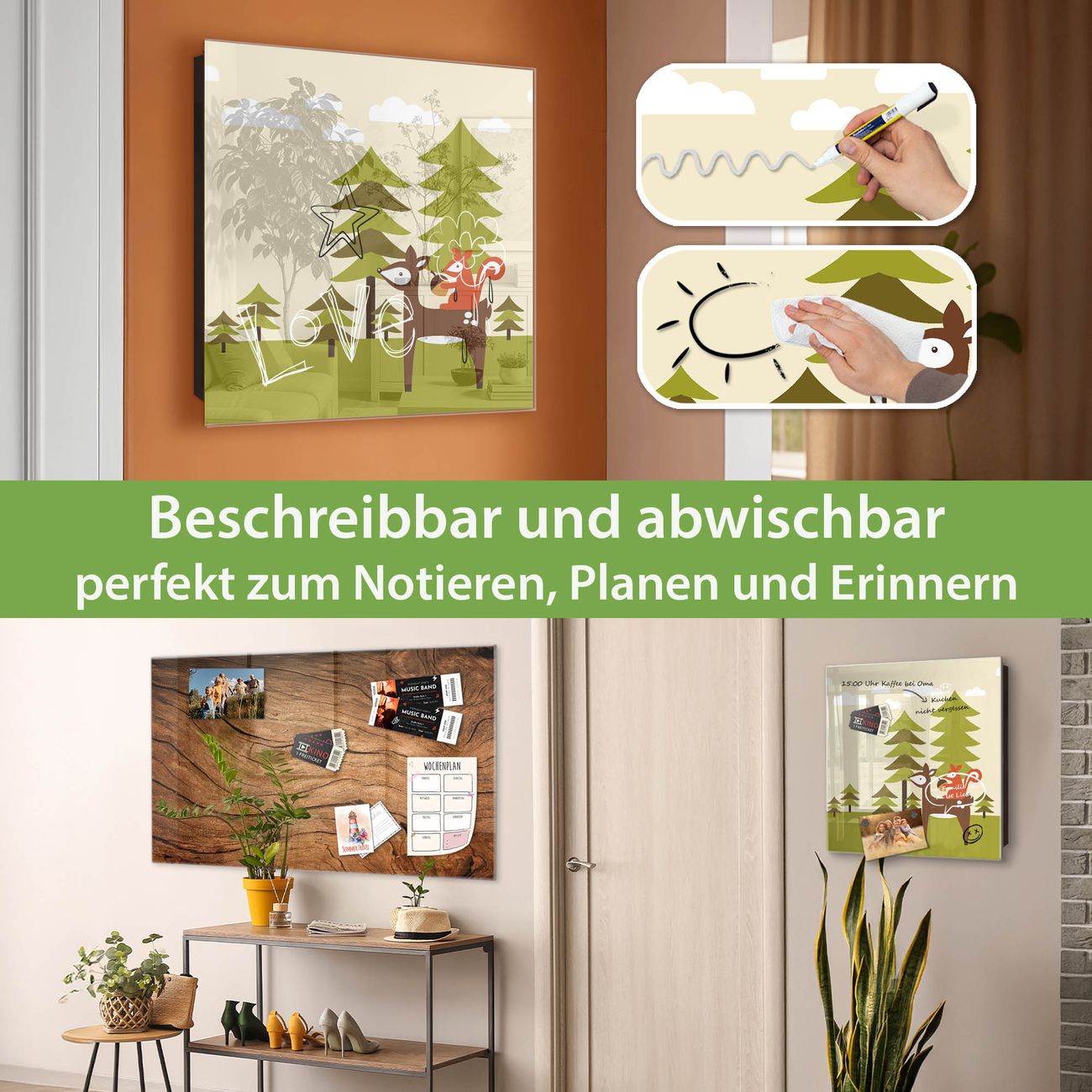 ✅ Magnetisch und mit Kreidestift beschreibbar, gehärtetes Glas, links angeschlagene TürOrdnung und Design in einem