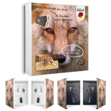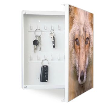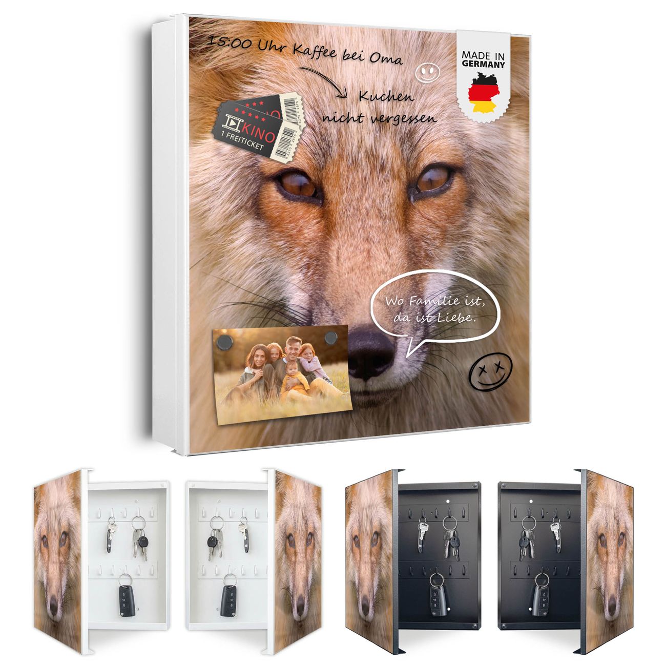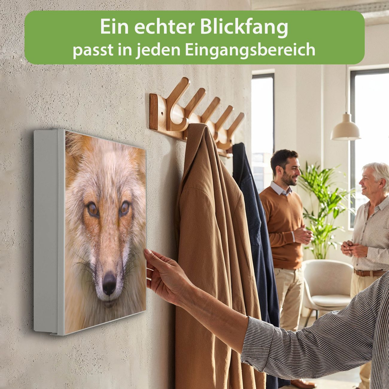 Bringe Ordnung und Eleganz in deinen Eingangsbereich mit dem banjado Schlüsselkasten Motiv Motiv Henryk. Die moderne Schlüsselbox kombiniert funktionales Design mit hochwertiger Verarbeitung und wird so zu einem echten Hingucker in Flur, Büro oder Ferienwohnung. ✅ Stilvolle Schlüsselaufbewahrung mit Motiv Motiv Henryk Der Design-Schlüsselkasten Motiv Motiv Henryk bietet Platz für bis zu 32 Schlüssel, die auf 4 stabilen Reihen mit je 8 Haken übersichtlich verstaut werden. Mit seinen kompakten Maßen von 30 x 30 x 5 cm passt die Schlüsselbox perfekt auch in kleinere Räume. Der weiß lackierte Stahlkorpus mit rechts angeschlagenem Türscharnier harmoniert mit gedruckten Folie auf der Front und fügt sich nahtlos in jedes Wohnambiente ein. Ob als Schlüsselorganizer für Zuhause oder als praktische Lösung für Büros, Praxen und Gewerbe, der banjado Schlüsselkasten sorgt für Ordnung und Übersicht. Dank der magnetischen, mit Kreidestiften beschreibbaren Folie auf der Front kannst du Notizen anheften oder Termine direkt auf der Oberfläche festhalten. Die Schlüsselbox Motiv Motiv Henryk zur Wandmontage wird inklusive Befestigungsmaterial geliefert und ist schnell angebracht. So hast du deine Schlüssel jederzeit griffbereit und zugleich stilvoll verstaut. Mit diesem banjado Schlüsselkasten Motiv Motiv Henryk kombinierst du praktische Aufbewahrung mit stilvollem Wohndesign. Ob privat oder geschäftlich, die Schlüsselbox sorgt für mehr Ordnung, Übersicht und ein wohnliches Ambiente.Vorteile im Überblick