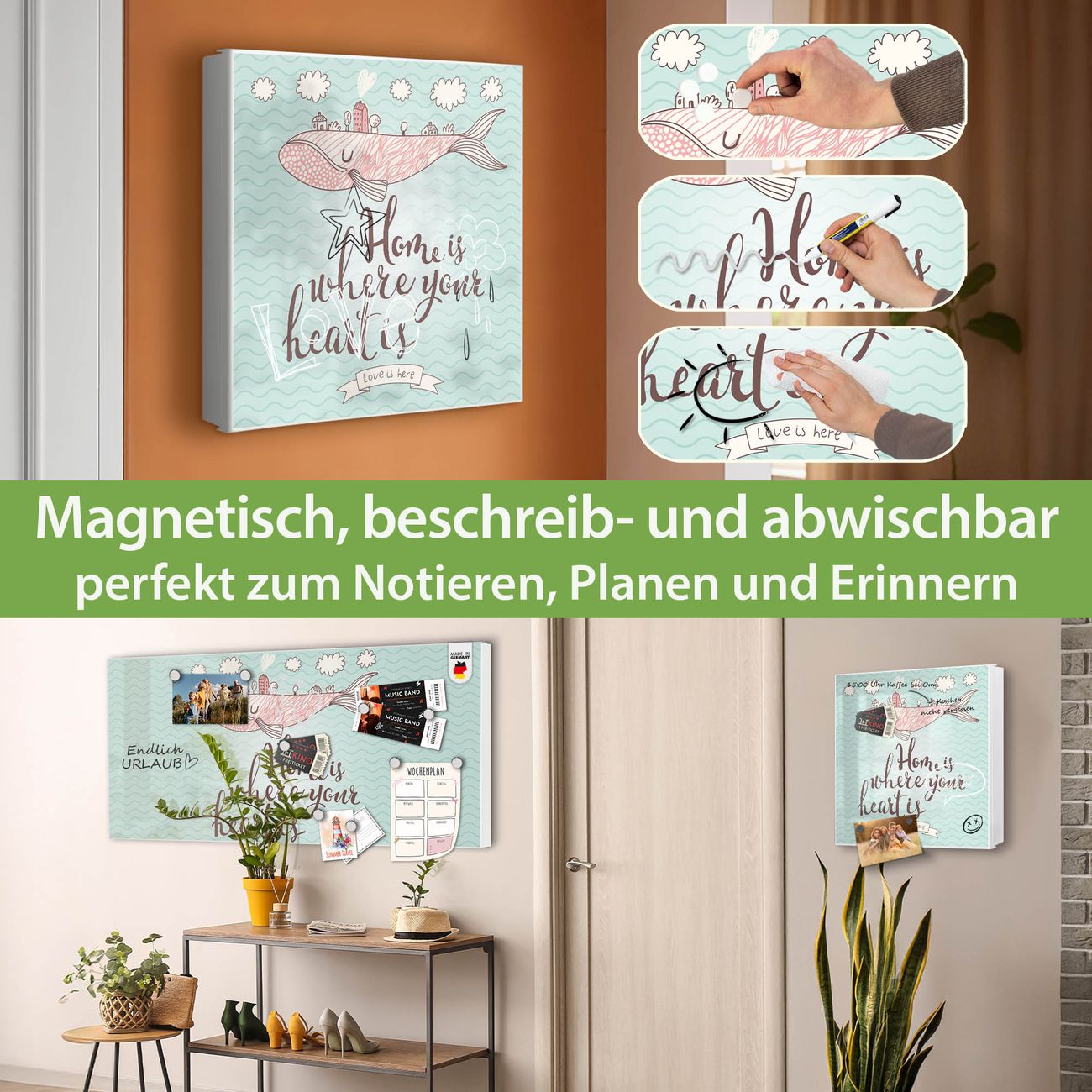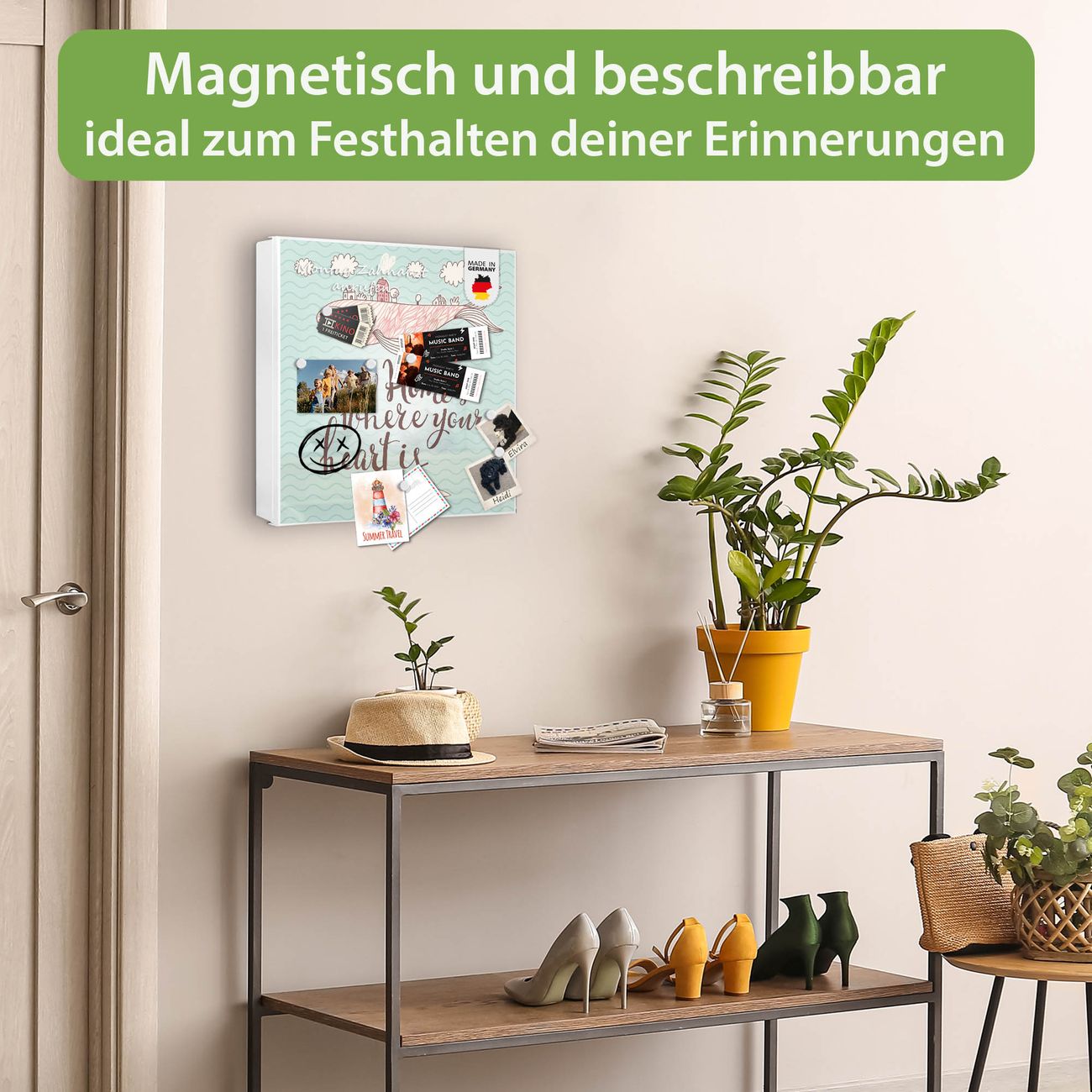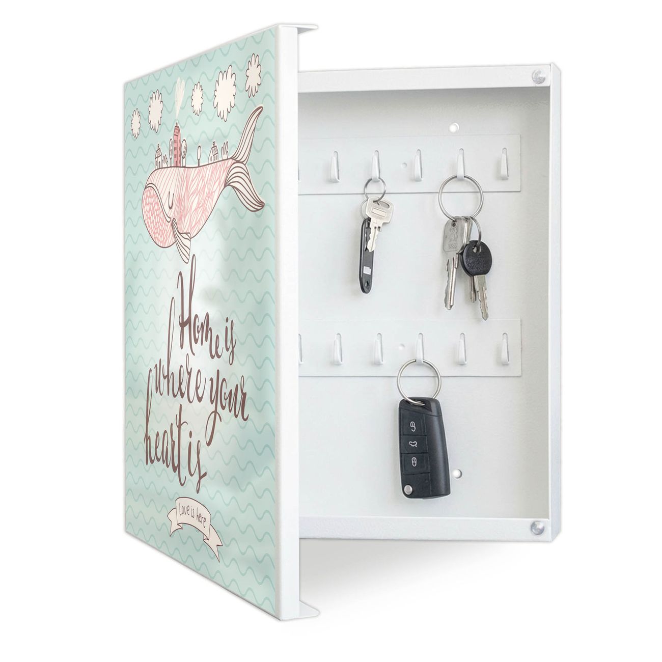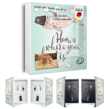 Bringe Ordnung und Eleganz in deinen Eingangsbereich mit dem banjado Schlüsselkasten Motiv Motiv Herzensangelegenheit. Die moderne Schlüsselbox kombiniert funktionales Design mit hochwertiger Verarbeitung und wird so zu einem echten Hingucker in Flur, Büro oder Ferienwohnung. ✅ Stilvolle Schlüsselaufbewahrung mit Motiv Motiv Herzensangelegenheit Der Design-Schlüsselkasten Motiv Motiv Herzensangelegenheit bietet Platz für bis zu 32 Schlüssel, die auf 4 stabilen Reihen mit je 8 Haken übersichtlich verstaut werden. Mit seinen kompakten Maßen von 30 x 30 x 5 cm passt die Schlüsselbox perfekt auch in kleinere Räume. Der weiß lackierte Stahlkorpus mit links angeschlagenem Türscharnier harmoniert mit gedruckten Folie auf der Front und fügt sich nahtlos in jedes Wohnambiente ein. Ob als Schlüsselorganizer für Zuhause oder als praktische Lösung für Büros, Praxen und Gewerbe, der banjado Schlüsselkasten sorgt für Ordnung und Übersicht. Dank der magnetischen, mit Kreidestiften beschreibbaren Folie auf der Front kannst du Notizen anheften oder Termine direkt auf der Oberfläche festhalten. Die Schlüsselbox Motiv Motiv Herzensangelegenheit zur Wandmontage wird inklusive Befestigungsmaterial geliefert und ist schnell angebracht. So hast du deine Schlüssel jederzeit griffbereit und zugleich stilvoll verstaut. Mit diesem banjado Schlüsselkasten Motiv Motiv Herzensangelegenheit kombinierst du praktische Aufbewahrung mit stilvollem Wohndesign. Ob privat oder geschäftlich, die Schlüsselbox sorgt für mehr Ordnung, Übersicht und ein wohnliches Ambiente.Vorteile im Überblick