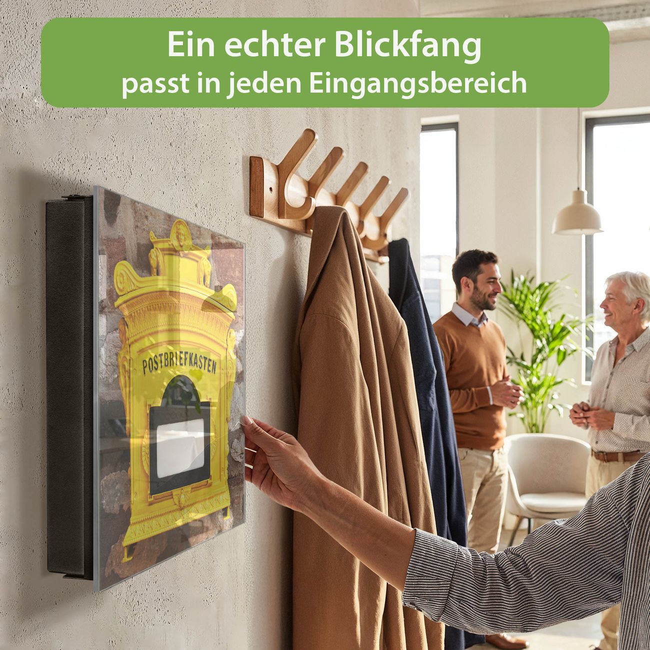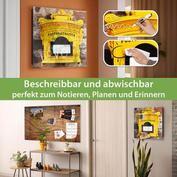 Bringe Ordnung und Eleganz in deinen Eingangsbereich mit dem banjado Schlüsselkasten Motiv Motiv Historischer Postkasten. Die moderne Schlüsselbox kombiniert funktionales Design mit hochwertiger Verarbeitung und wird so zu einem echten Hingucker in Flur, Büro oder Ferienwohnung. ✅ Stilvolle Schlüsselaufbewahrung mit Glasfront im Motiv Motiv Historischer Postkasten Der Design-Schlüsselkasten Motiv Motiv Historischer Postkasten bietet Platz für bis zu 50 Schlüssel, die auf 5 stabilen Reihen mit je 10 Haken übersichtlich verstaut werden. Mit seinen kompakten Maßen von 30 x 30 x 5 cm passt die Schlüsselbox perfekt auch in kleinere Räume. Der schwarz lackierte Stahlkorpus mit rechts angeschlagenem Türscharnier harmoniert mit der Glasfront und fügt sich nahtlos in jedes Wohnambiente ein. Ob als Schlüsselorganizer für Zuhause oder als praktische Lösung für Büros, Praxen und Gewerbe, der banjado Schlüsselkasten sorgt für Ordnung und Übersicht. Dank der magnetischen, mit Kreidestiften beschreibbaren Glasfront kannst du Notizen anheften oder Termine direkt auf der Oberfläche festhalten. Die Schlüsselbox Motiv Motiv Historischer Postkasten zur Wandmontage wird inklusive Befestigungsmaterial geliefert und ist schnell angebracht. So hast du deine Schlüssel jederzeit griffbereit und zugleich stilvoll verstaut. Mit diesem banjado Schlüsselkasten Motiv Motiv Historischer Postkasten kombinierst du praktische Aufbewahrung mit stilvollem Wohndesign. Ob privat oder geschäftlich, die Schlüsselbox sorgt für mehr Ordnung, Übersicht und ein wohnliches Ambiente.Vorteile im Überblick
