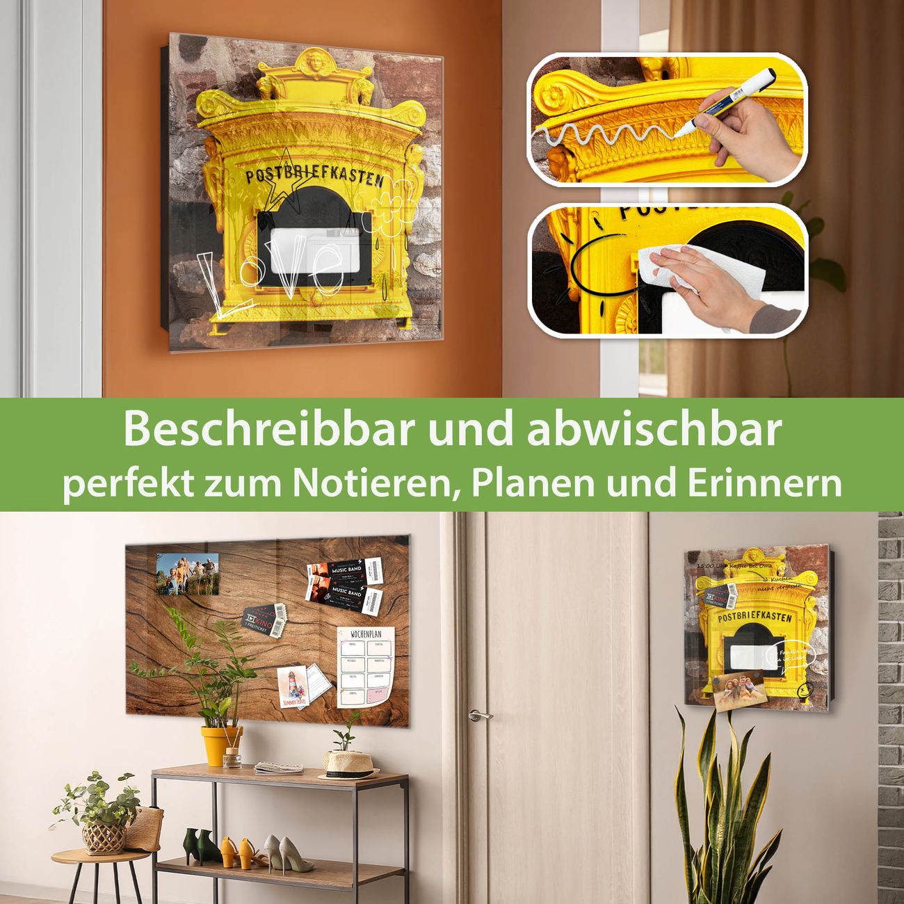✅ Magnetisch und mit Kreidestift beschreibbar, gehärtetes Glas, rechts angeschlagene TürOrdnung und Design in einem
