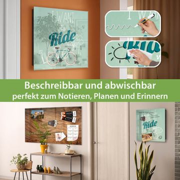 Bringe Ordnung und Eleganz in deinen Eingangsbereich mit dem banjado Schlüsselkasten Motiv Motiv I want to ride my bike. Die moderne Schlüsselbox kombiniert funktionales Design mit hochwertiger Verarbeitung und wird so zu einem echten Hingucker in Flur, Büro oder Ferienwohnung. ✅ Stilvolle Schlüsselaufbewahrung mit Glasfront im Motiv Motiv I want to ride my bike Der Design-Schlüsselkasten Motiv Motiv I want to ride my bike bietet Platz für bis zu 50 Schlüssel, die auf 5 stabilen Reihen mit je 10 Haken übersichtlich verstaut werden. Mit seinen kompakten Maßen von 30 x 30 x 5 cm passt die Schlüsselbox perfekt auch in kleinere Räume. Der schwarz lackierte Stahlkorpus mit rechts angeschlagenem Türscharnier harmoniert mit der Glasfront und fügt sich nahtlos in jedes Wohnambiente ein. Ob als Schlüsselorganizer für Zuhause oder als praktische Lösung für Büros, Praxen und Gewerbe, der banjado Schlüsselkasten sorgt für Ordnung und Übersicht. Dank der magnetischen, mit Kreidestiften beschreibbaren Glasfront kannst du Notizen anheften oder Termine direkt auf der Oberfläche festhalten. Die Schlüsselbox Motiv Motiv I want to ride my bike zur Wandmontage wird inklusive Befestigungsmaterial geliefert und ist schnell angebracht. So hast du deine Schlüssel jederzeit griffbereit und zugleich stilvoll verstaut. Mit diesem banjado Schlüsselkasten Motiv Motiv I want to ride my bike kombinierst du praktische Aufbewahrung mit stilvollem Wohndesign. Ob privat oder geschäftlich, die Schlüsselbox sorgt für mehr Ordnung, Übersicht und ein wohnliches Ambiente.Vorteile im Überblick
