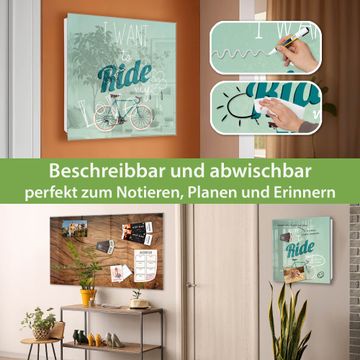Bringe Ordnung und Eleganz in deinen Eingangsbereich mit dem banjado Schlüsselkasten Motiv Motiv I want to ride my bike. Die moderne Schlüsselbox kombiniert funktionales Design mit hochwertiger Verarbeitung und wird so zu einem echten Hingucker in Flur, Büro oder Ferienwohnung. ✅ Stilvolle Schlüsselaufbewahrung mit Glasfront im Motiv Motiv I want to ride my bike Der Design-Schlüsselkasten Motiv Motiv I want to ride my bike bietet Platz für bis zu 50 Schlüssel, die auf 5 stabilen Reihen mit je 10 Haken übersichtlich verstaut werden. Mit seinen kompakten Maßen von 30 x 30 x 5 cm passt die Schlüsselbox perfekt auch in kleinere Räume. Der weiß lackierte Stahlkorpus mit rechts angeschlagenem Türscharnier harmoniert mit der Glasfront und fügt sich nahtlos in jedes Wohnambiente ein. Ob als Schlüsselorganizer für Zuhause oder als praktische Lösung für Büros, Praxen und Gewerbe, der banjado Schlüsselkasten sorgt für Ordnung und Übersicht. Dank der magnetischen, mit Kreidestiften beschreibbaren Glasfront kannst du Notizen anheften oder Termine direkt auf der Oberfläche festhalten. Die Schlüsselbox Motiv Motiv I want to ride my bike zur Wandmontage wird inklusive Befestigungsmaterial geliefert und ist schnell angebracht. So hast du deine Schlüssel jederzeit griffbereit und zugleich stilvoll verstaut. Mit diesem banjado Schlüsselkasten Motiv Motiv I want to ride my bike kombinierst du praktische Aufbewahrung mit stilvollem Wohndesign. Ob privat oder geschäftlich, die Schlüsselbox sorgt für mehr Ordnung, Übersicht und ein wohnliches Ambiente.Vorteile im Überblick