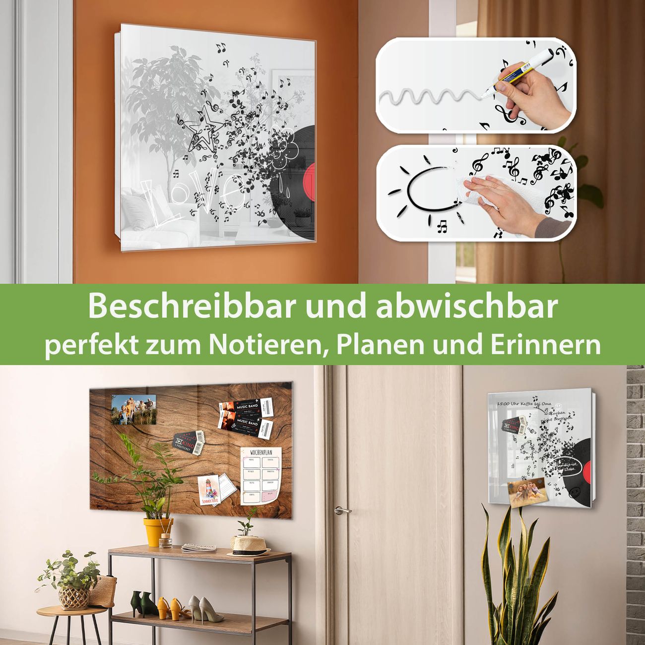 ✅ Magnetisch und mit Kreidestift beschreibbar, gehärtetes Glas, links angeschlagene TürOrdnung und Design in einem