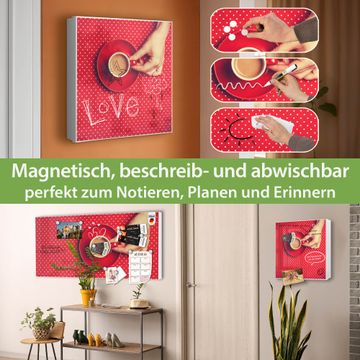 Bringe Ordnung und Eleganz in deinen Eingangsbereich mit dem banjado Schlüsselkasten Motiv Motiv Kaffee Rot Weiss. Die moderne Schlüsselbox kombiniert funktionales Design mit hochwertiger Verarbeitung und wird so zu einem echten Hingucker in Flur, Büro oder Ferienwohnung. ✅ Stilvolle Schlüsselaufbewahrung mit Motiv Motiv Kaffee Rot Weiss Der Design-Schlüsselkasten Motiv Motiv Kaffee Rot Weiss bietet Platz für bis zu 32 Schlüssel, die auf 4 stabilen Reihen mit je 8 Haken übersichtlich verstaut werden. Mit seinen kompakten Maßen von 30 x 30 x 5 cm passt die Schlüsselbox perfekt auch in kleinere Räume. Der weiß lackierte Stahlkorpus mit links angeschlagenem Türscharnier harmoniert mit gedruckten Folie auf der Front und fügt sich nahtlos in jedes Wohnambiente ein. Ob als Schlüsselorganizer für Zuhause oder als praktische Lösung für Büros, Praxen und Gewerbe, der banjado Schlüsselkasten sorgt für Ordnung und Übersicht. Dank der magnetischen, mit Kreidestiften beschreibbaren Folie auf der Front kannst du Notizen anheften oder Termine direkt auf der Oberfläche festhalten. Die Schlüsselbox Motiv Motiv Kaffee Rot Weiss zur Wandmontage wird inklusive Befestigungsmaterial geliefert und ist schnell angebracht. So hast du deine Schlüssel jederzeit griffbereit und zugleich stilvoll verstaut. Mit diesem banjado Schlüsselkasten Motiv Motiv Kaffee Rot Weiss kombinierst du praktische Aufbewahrung mit stilvollem Wohndesign. Ob privat oder geschäftlich, die Schlüsselbox sorgt für mehr Ordnung, Übersicht und ein wohnliches Ambiente.Vorteile im Überblick