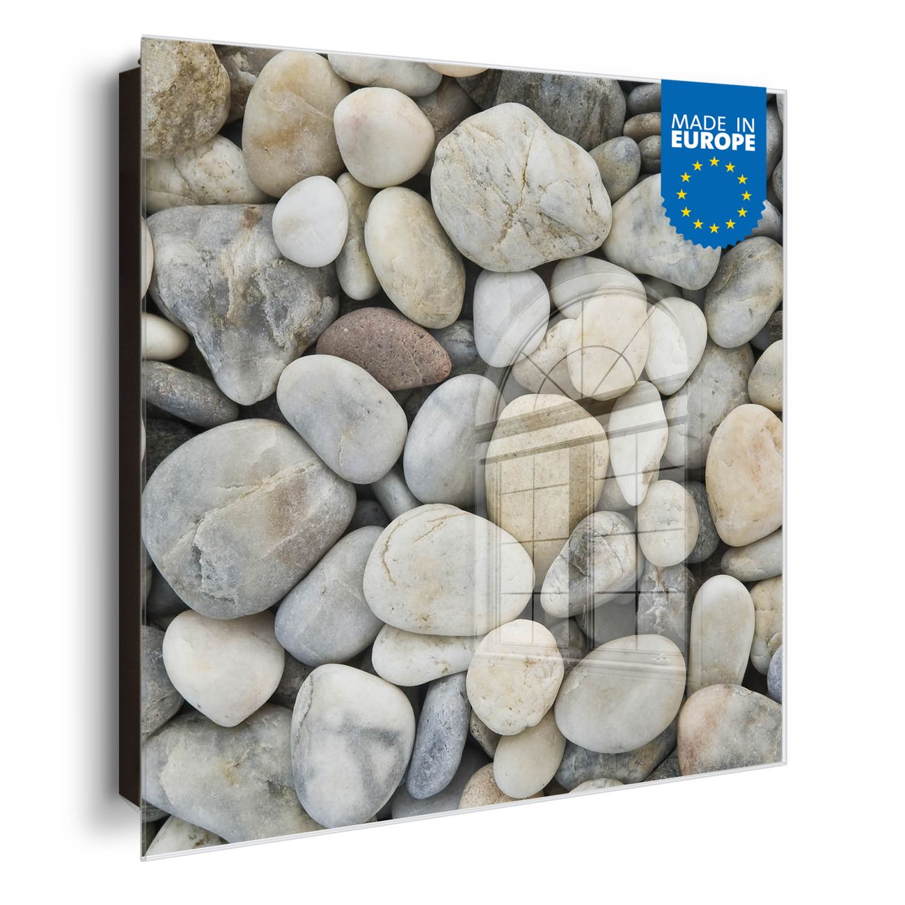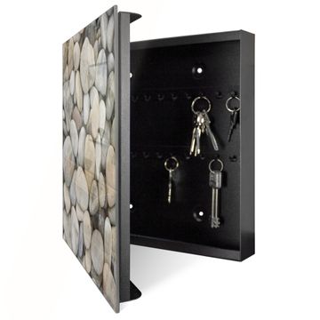 Bringe Ordnung und Eleganz in deinen Eingangsbereich mit dem banjado Schlüsselkasten Motiv Motiv Kieselsteine. Die moderne Schlüsselbox kombiniert funktionales Design mit hochwertiger Verarbeitung und wird so zu einem echten Hingucker in Flur, Büro oder Ferienwohnung. ✅ Stilvolle Schlüsselaufbewahrung mit Glasfront im Motiv Motiv Kieselsteine Der Design-Schlüsselkasten Motiv Motiv Kieselsteine bietet Platz für bis zu 50 Schlüssel, die auf 5 stabilen Reihen mit je 10 Haken übersichtlich verstaut werden. Mit seinen kompakten Maßen von 30 x 30 x 5 cm passt die Schlüsselbox perfekt auch in kleinere Räume. Der schwarz lackierte Stahlkorpus mit rechts angeschlagenem Türscharnier harmoniert mit der Glasfront und fügt sich nahtlos in jedes Wohnambiente ein. Ob als Schlüsselorganizer für Zuhause oder als praktische Lösung für Büros, Praxen und Gewerbe, der banjado Schlüsselkasten sorgt für Ordnung und Übersicht. Dank der magnetischen, mit Kreidestiften beschreibbaren Glasfront kannst du Notizen anheften oder Termine direkt auf der Oberfläche festhalten. Die Schlüsselbox Motiv Motiv Kieselsteine zur Wandmontage wird inklusive Befestigungsmaterial geliefert und ist schnell angebracht. So hast du deine Schlüssel jederzeit griffbereit und zugleich stilvoll verstaut. Mit diesem banjado Schlüsselkasten Motiv Motiv Kieselsteine kombinierst du praktische Aufbewahrung mit stilvollem Wohndesign. Ob privat oder geschäftlich, die Schlüsselbox sorgt für mehr Ordnung, Übersicht und ein wohnliches Ambiente.Vorteile im Überblick