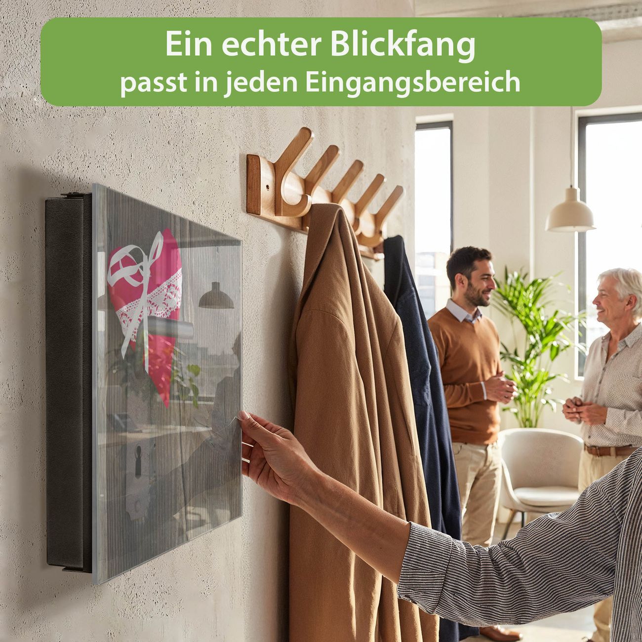 Bringe Ordnung und Eleganz in deinen Eingangsbereich mit dem banjado Schlüsselkasten Motiv Motiv Knock On Your Door. Die moderne Schlüsselbox kombiniert funktionales Design mit hochwertiger Verarbeitung und wird so zu einem echten Hingucker in Flur, Büro oder Ferienwohnung. ✅ Stilvolle Schlüsselaufbewahrung mit Glasfront im Motiv Motiv Knock On Your Door Der Design-Schlüsselkasten Motiv Motiv Knock On Your Door bietet Platz für bis zu 50 Schlüssel, die auf 5 stabilen Reihen mit je 10 Haken übersichtlich verstaut werden. Mit seinen kompakten Maßen von 30 x 30 x 5 cm passt die Schlüsselbox perfekt auch in kleinere Räume. Der schwarz lackierte Stahlkorpus mit rechts angeschlagenem Türscharnier harmoniert mit der Glasfront und fügt sich nahtlos in jedes Wohnambiente ein. Ob als Schlüsselorganizer für Zuhause oder als praktische Lösung für Büros, Praxen und Gewerbe, der banjado Schlüsselkasten sorgt für Ordnung und Übersicht. Dank der magnetischen, mit Kreidestiften beschreibbaren Glasfront kannst du Notizen anheften oder Termine direkt auf der Oberfläche festhalten. Die Schlüsselbox Motiv Motiv Knock On Your Door zur Wandmontage wird inklusive Befestigungsmaterial geliefert und ist schnell angebracht. So hast du deine Schlüssel jederzeit griffbereit und zugleich stilvoll verstaut. Mit diesem banjado Schlüsselkasten Motiv Motiv Knock On Your Door kombinierst du praktische Aufbewahrung mit stilvollem Wohndesign. Ob privat oder geschäftlich, die Schlüsselbox sorgt für mehr Ordnung, Übersicht und ein wohnliches Ambiente.Vorteile im Überblick