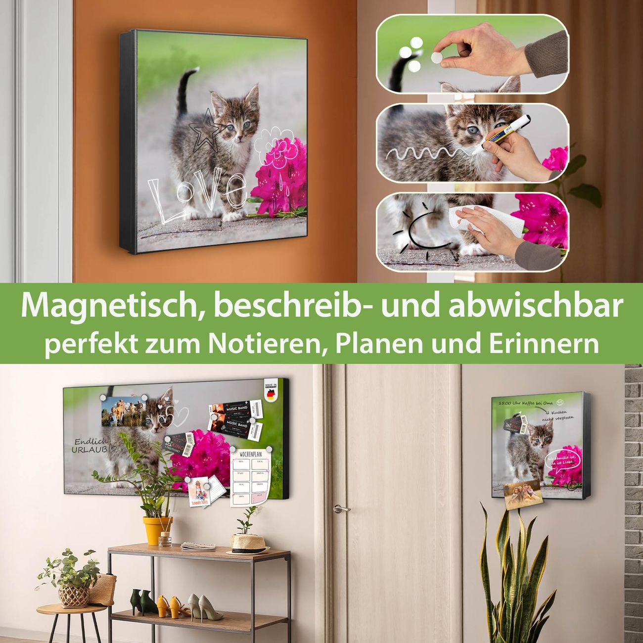 ✅ Magnetisch und mit Kreidestift beschreibbar, rechts angeschlagene TürOrdnung und Design in einem