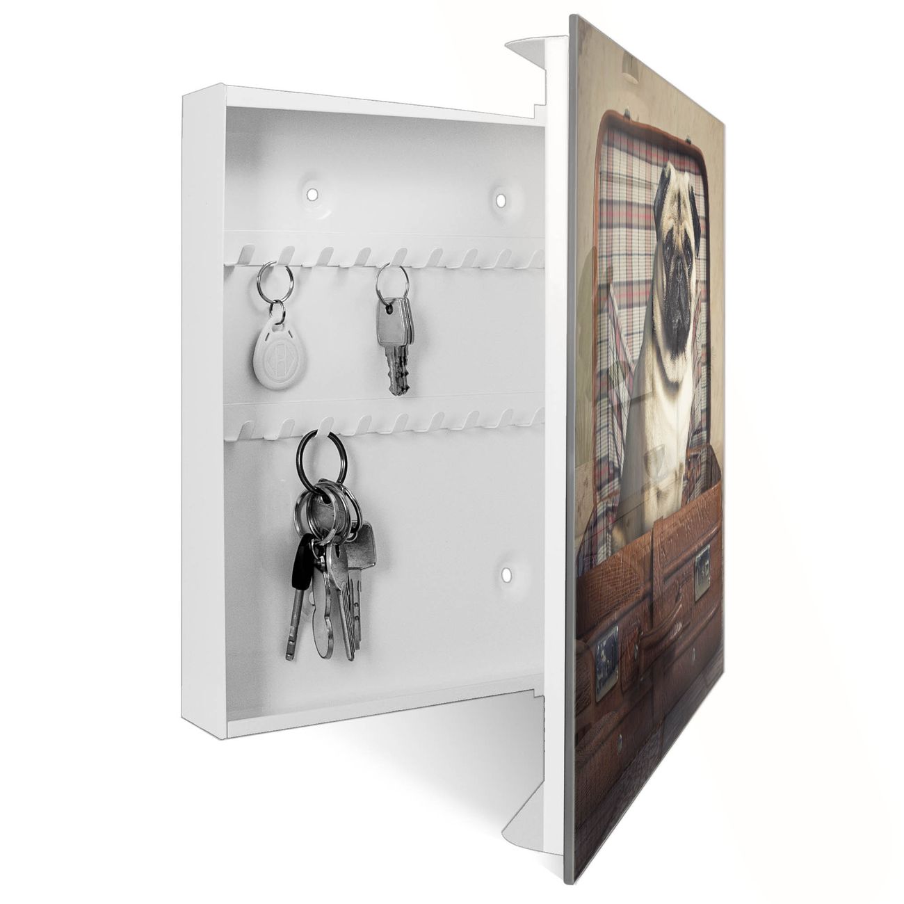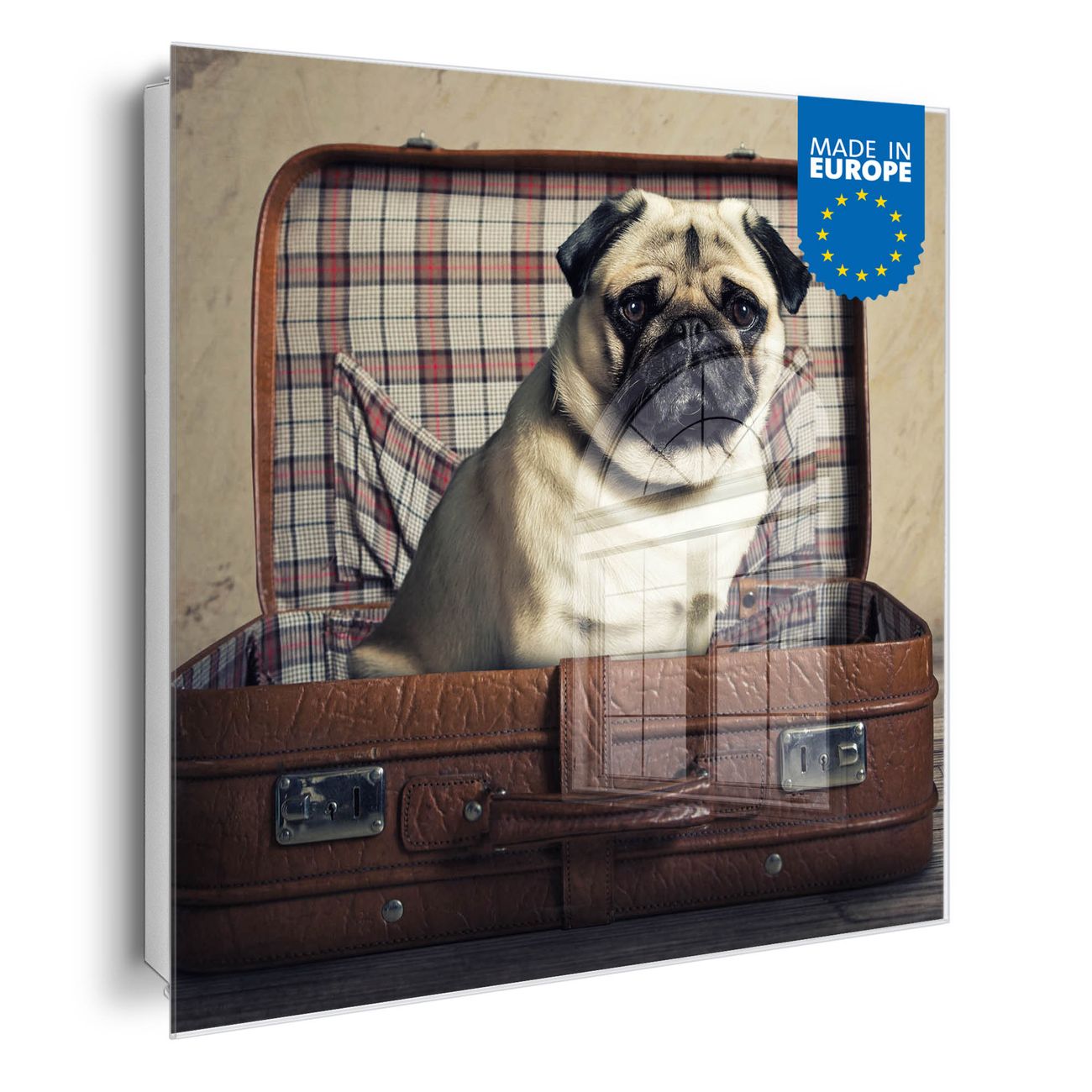 Schlüsselkasten Glas Motiv Mops im Koffer