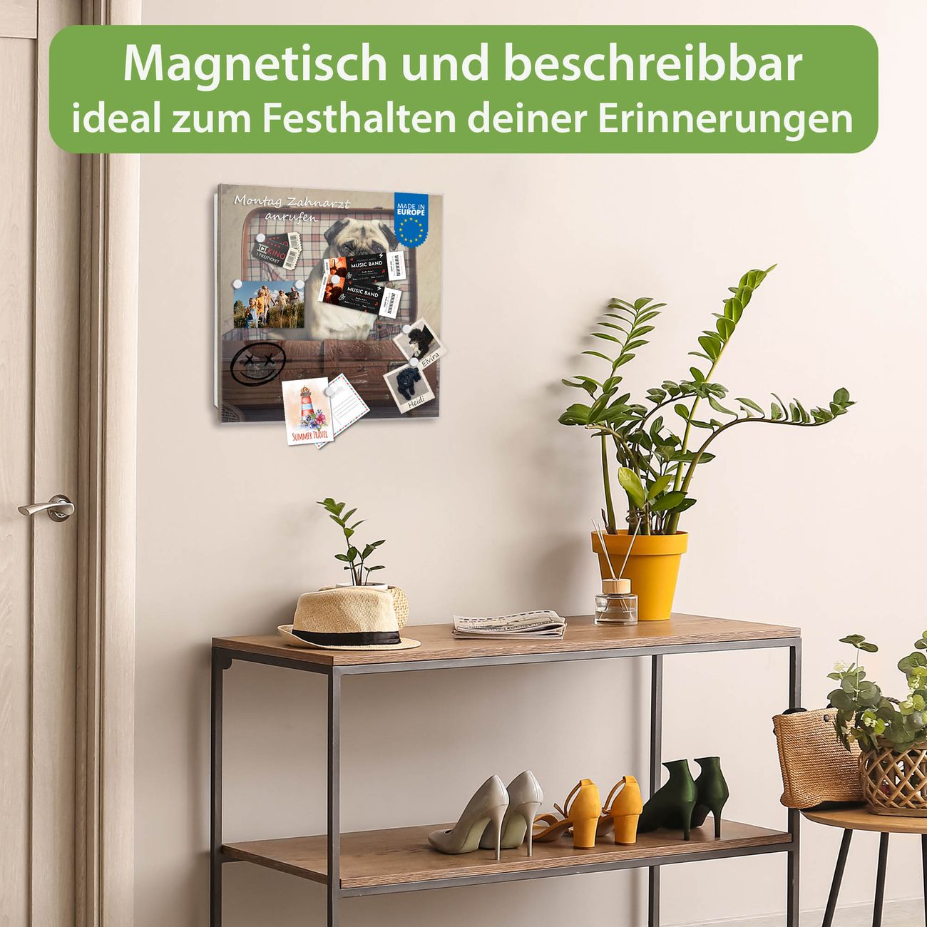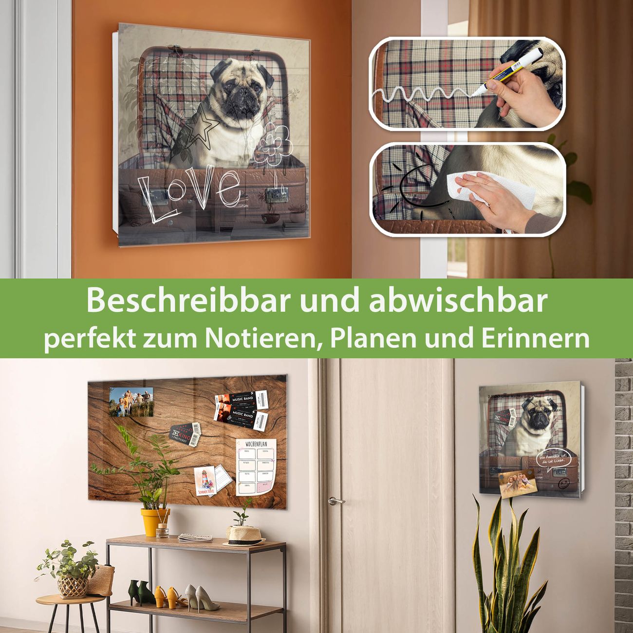 ✅ Magnetisch und mit Kreidestift beschreibbar, gehärtetes Glas, rechts angeschlagene TürOrdnung und Design in einem