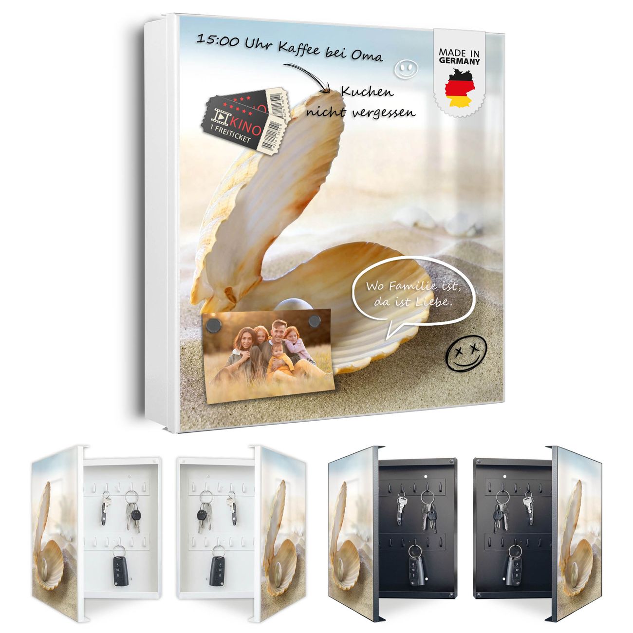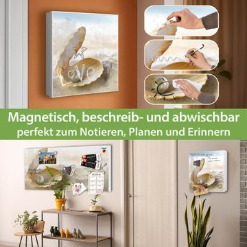 Bringe Ordnung und Eleganz in deinen Eingangsbereich mit dem banjado Schlüsselkasten Motiv Motiv Perlenmuschel. Die moderne Schlüsselbox kombiniert funktionales Design mit hochwertiger Verarbeitung und wird so zu einem echten Hingucker in Flur, Büro oder Ferienwohnung. ✅ Stilvolle Schlüsselaufbewahrung mit Motiv Motiv Perlenmuschel Der Design-Schlüsselkasten Motiv Motiv Perlenmuschel bietet Platz für bis zu 32 Schlüssel, die auf 4 stabilen Reihen mit je 8 Haken übersichtlich verstaut werden. Mit seinen kompakten Maßen von 30 x 30 x 5 cm passt die Schlüsselbox perfekt auch in kleinere Räume. Der weiß lackierte Stahlkorpus mit links angeschlagenem Türscharnier harmoniert mit gedruckten Folie auf der Front und fügt sich nahtlos in jedes Wohnambiente ein. Ob als Schlüsselorganizer für Zuhause oder als praktische Lösung für Büros, Praxen und Gewerbe, der banjado Schlüsselkasten sorgt für Ordnung und Übersicht. Dank der magnetischen, mit Kreidestiften beschreibbaren Folie auf der Front kannst du Notizen anheften oder Termine direkt auf der Oberfläche festhalten. Die Schlüsselbox Motiv Motiv Perlenmuschel zur Wandmontage wird inklusive Befestigungsmaterial geliefert und ist schnell angebracht. So hast du deine Schlüssel jederzeit griffbereit und zugleich stilvoll verstaut. Mit diesem banjado Schlüsselkasten Motiv Motiv Perlenmuschel kombinierst du praktische Aufbewahrung mit stilvollem Wohndesign. Ob privat oder geschäftlich, die Schlüsselbox sorgt für mehr Ordnung, Übersicht und ein wohnliches Ambiente.Vorteile im Überblick