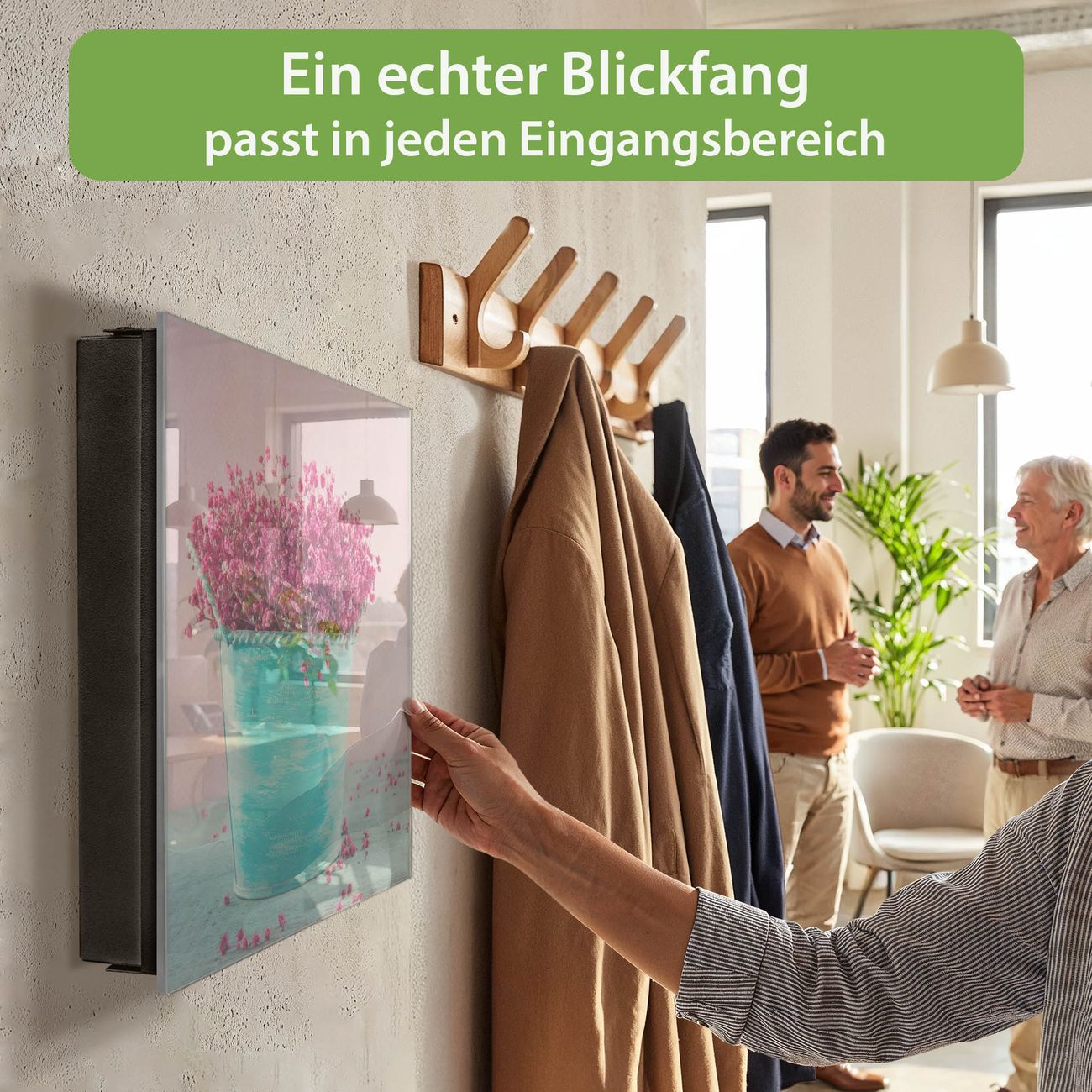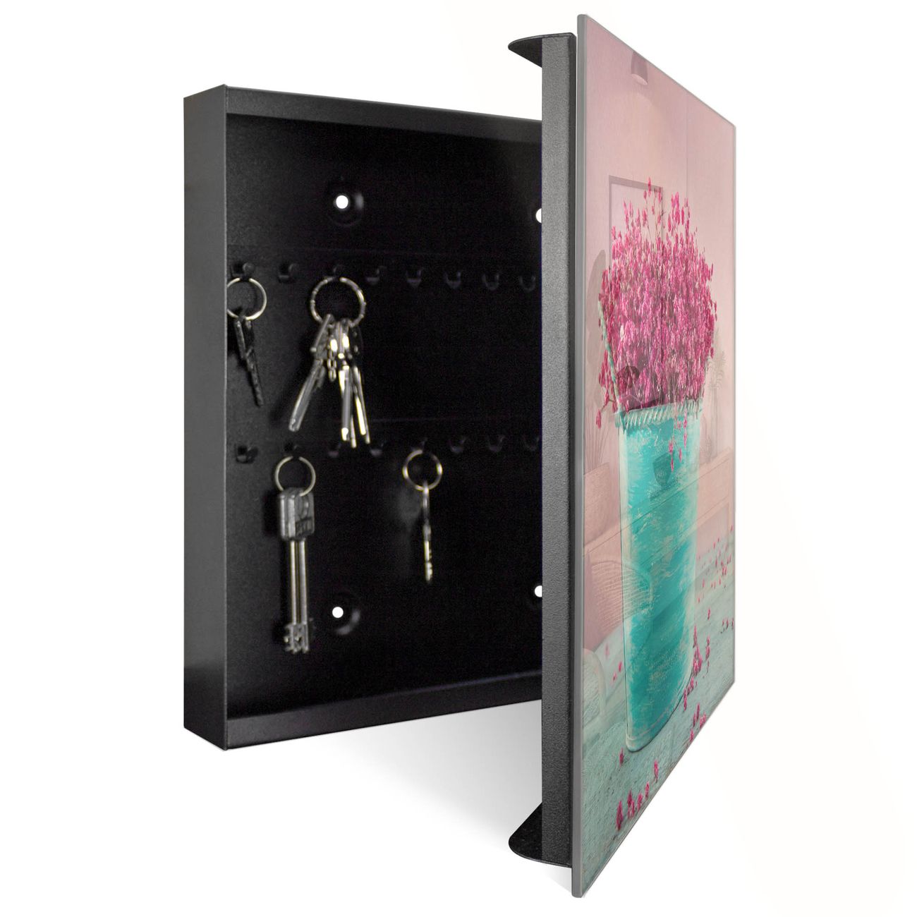 Bringe Ordnung und Eleganz in deinen Eingangsbereich mit dem banjado Schlüsselkasten Motiv Motiv Pinke Trockenblumen. Die moderne Schlüsselbox kombiniert funktionales Design mit hochwertiger Verarbeitung und wird so zu einem echten Hingucker in Flur, Büro oder Ferienwohnung. ✅ Stilvolle Schlüsselaufbewahrung mit Glasfront im Motiv Motiv Pinke Trockenblumen Der Design-Schlüsselkasten Motiv Motiv Pinke Trockenblumen bietet Platz für bis zu 50 Schlüssel, die auf 5 stabilen Reihen mit je 10 Haken übersichtlich verstaut werden. Mit seinen kompakten Maßen von 30 x 30 x 5 cm passt die Schlüsselbox perfekt auch in kleinere Räume. Der schwarz lackierte Stahlkorpus mit rechts angeschlagenem Türscharnier harmoniert mit der Glasfront und fügt sich nahtlos in jedes Wohnambiente ein. Ob als Schlüsselorganizer für Zuhause oder als praktische Lösung für Büros, Praxen und Gewerbe, der banjado Schlüsselkasten sorgt für Ordnung und Übersicht. Dank der magnetischen, mit Kreidestiften beschreibbaren Glasfront kannst du Notizen anheften oder Termine direkt auf der Oberfläche festhalten. Die Schlüsselbox Motiv Motiv Pinke Trockenblumen zur Wandmontage wird inklusive Befestigungsmaterial geliefert und ist schnell angebracht. So hast du deine Schlüssel jederzeit griffbereit und zugleich stilvoll verstaut. Mit diesem banjado Schlüsselkasten Motiv Motiv Pinke Trockenblumen kombinierst du praktische Aufbewahrung mit stilvollem Wohndesign. Ob privat oder geschäftlich, die Schlüsselbox sorgt für mehr Ordnung, Übersicht und ein wohnliches Ambiente.Vorteile im Überblick