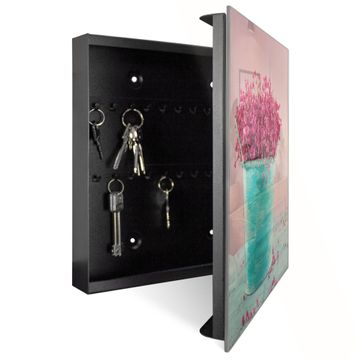 Schlüsselkasten Glas Motiv Pinke Trockenblumen
