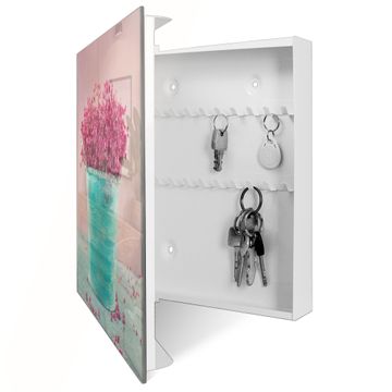 Schlüsselkasten Glas Motiv Pinke Trockenblumen