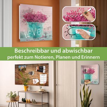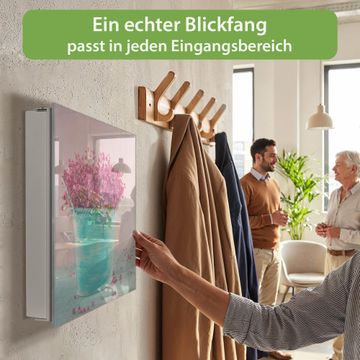 Bringe Ordnung und Eleganz in deinen Eingangsbereich mit dem banjado Schlüsselkasten Motiv Motiv Pinke Trockenblumen. Die moderne Schlüsselbox kombiniert funktionales Design mit hochwertiger Verarbeitung und wird so zu einem echten Hingucker in Flur, Büro oder Ferienwohnung. ✅ Stilvolle Schlüsselaufbewahrung mit Glasfront im Motiv Motiv Pinke Trockenblumen Der Design-Schlüsselkasten Motiv Motiv Pinke Trockenblumen bietet Platz für bis zu 50 Schlüssel, die auf 5 stabilen Reihen mit je 10 Haken übersichtlich verstaut werden. Mit seinen kompakten Maßen von 30 x 30 x 5 cm passt die Schlüsselbox perfekt auch in kleinere Räume. Der weiß lackierte Stahlkorpus mit rechts angeschlagenem Türscharnier harmoniert mit der Glasfront und fügt sich nahtlos in jedes Wohnambiente ein. Ob als Schlüsselorganizer für Zuhause oder als praktische Lösung für Büros, Praxen und Gewerbe, der banjado Schlüsselkasten sorgt für Ordnung und Übersicht. Dank der magnetischen, mit Kreidestiften beschreibbaren Glasfront kannst du Notizen anheften oder Termine direkt auf der Oberfläche festhalten. Die Schlüsselbox Motiv Motiv Pinke Trockenblumen zur Wandmontage wird inklusive Befestigungsmaterial geliefert und ist schnell angebracht. So hast du deine Schlüssel jederzeit griffbereit und zugleich stilvoll verstaut. Mit diesem banjado Schlüsselkasten Motiv Motiv Pinke Trockenblumen kombinierst du praktische Aufbewahrung mit stilvollem Wohndesign. Ob privat oder geschäftlich, die Schlüsselbox sorgt für mehr Ordnung, Übersicht und ein wohnliches Ambiente.Vorteile im Überblick