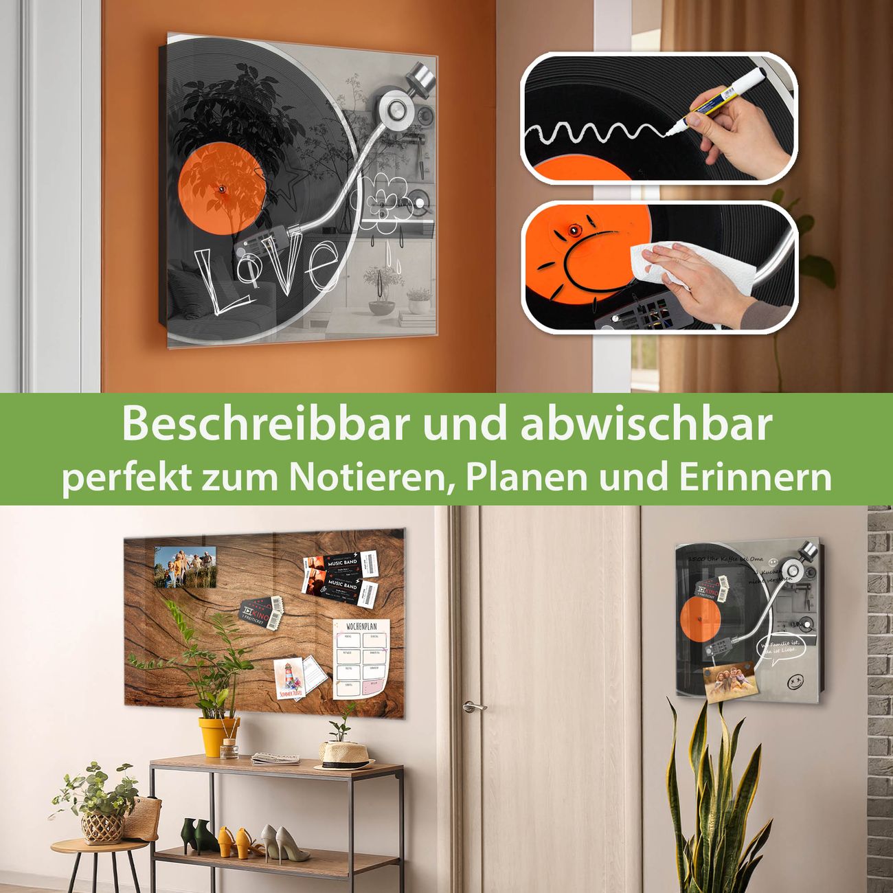 ✅ Magnetisch und mit Kreidestift beschreibbar, gehärtetes Glas, rechts angeschlagene TürOrdnung und Design in einem